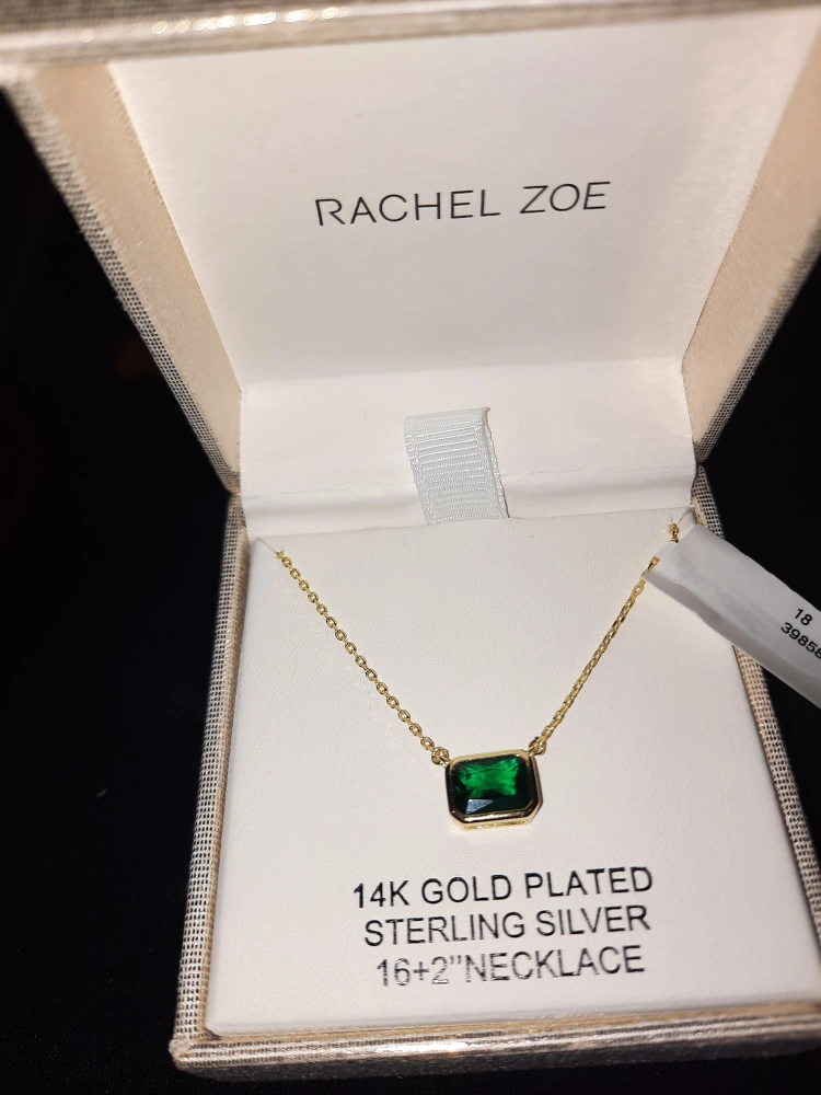 Genuine NIB 18K OVER solid sterling silver necklace. Emerald birthstone or great Mother's day gift π π