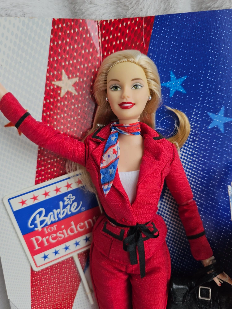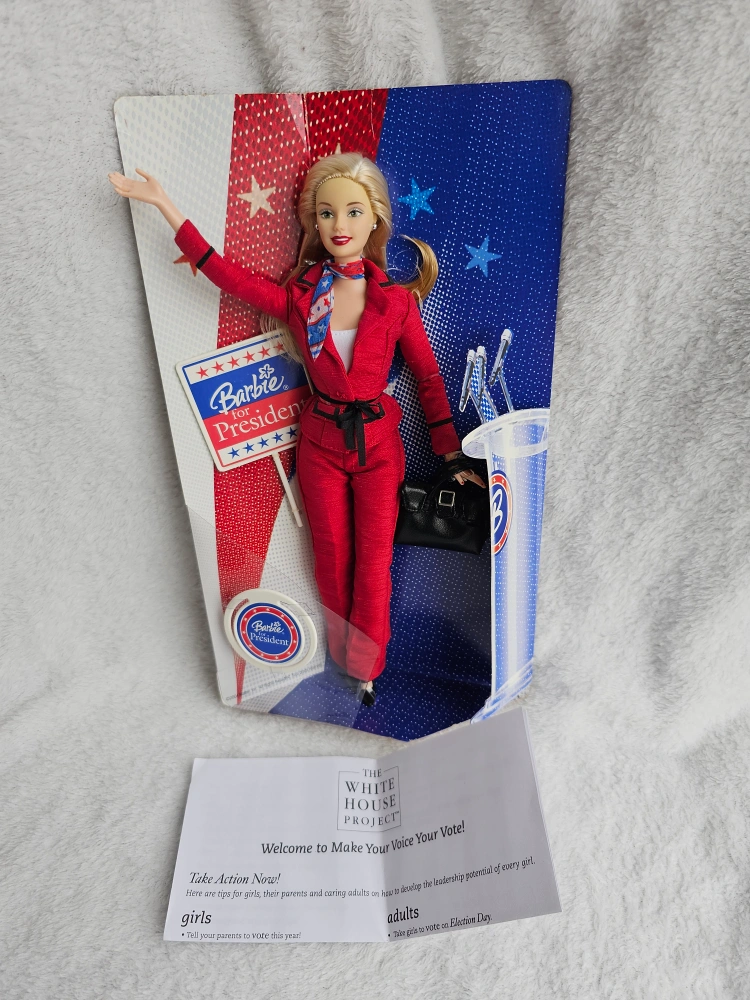 Barbie for President!! This vintage Barbie is pristine, never played with, and in the best red power suit! Know a girl you want to inspire? Treat her or yourself to this aspirational beauty!!