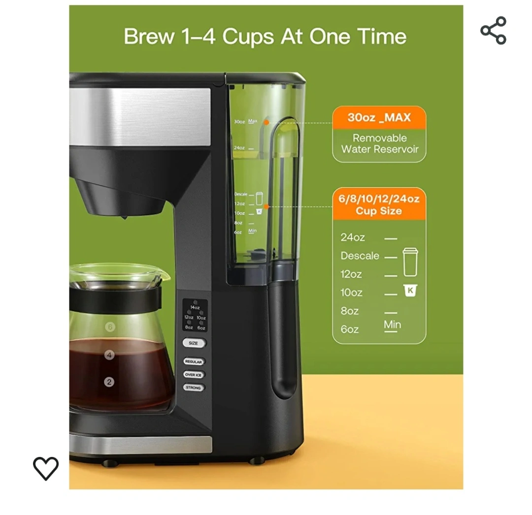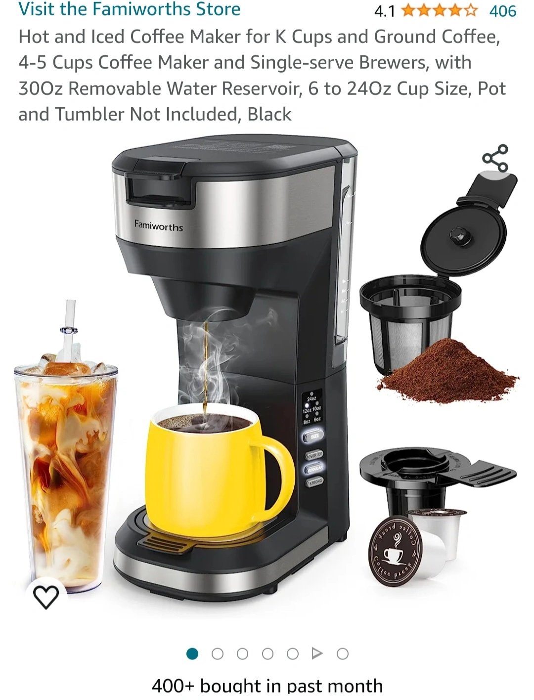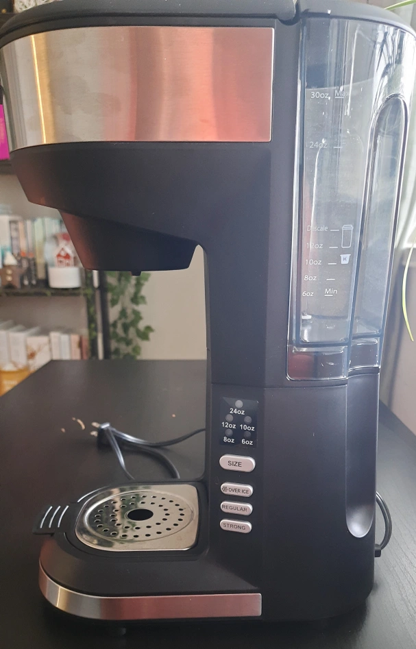 Hot and Iced Coffee Maker for K Cups and Ground Coffee, 4-5 Cups Coffee Maker and Single-serve Brewers, with 30Oz Removable Water Reservoir, 6 to 24Oz Cup Size, Pot and Tumbler Not Included, Black.