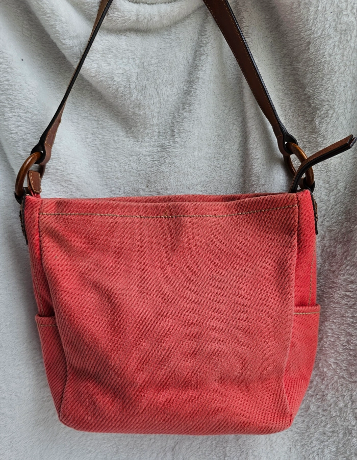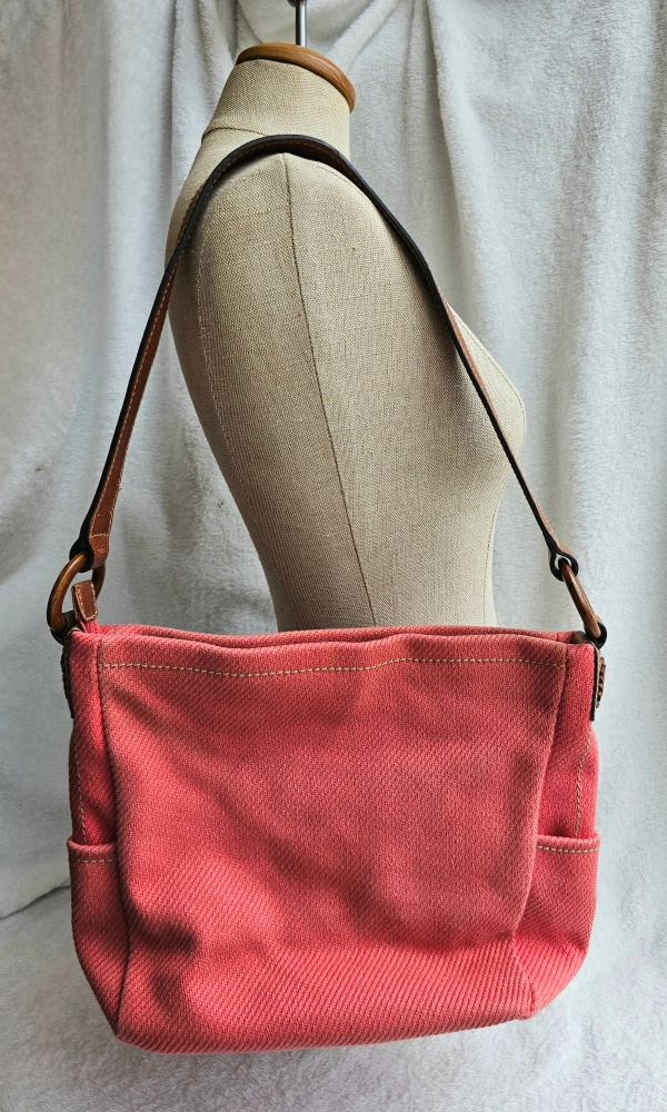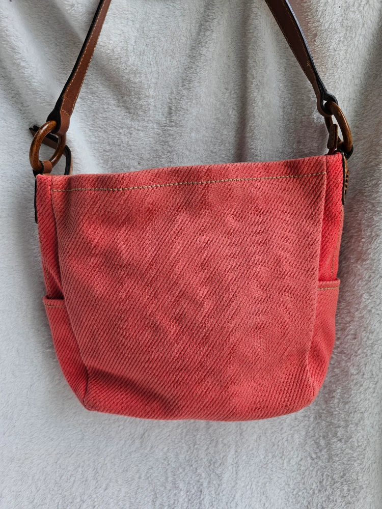 Vintage Fossil Coral Pink Canvas Boho Chic Shoulder bag purse