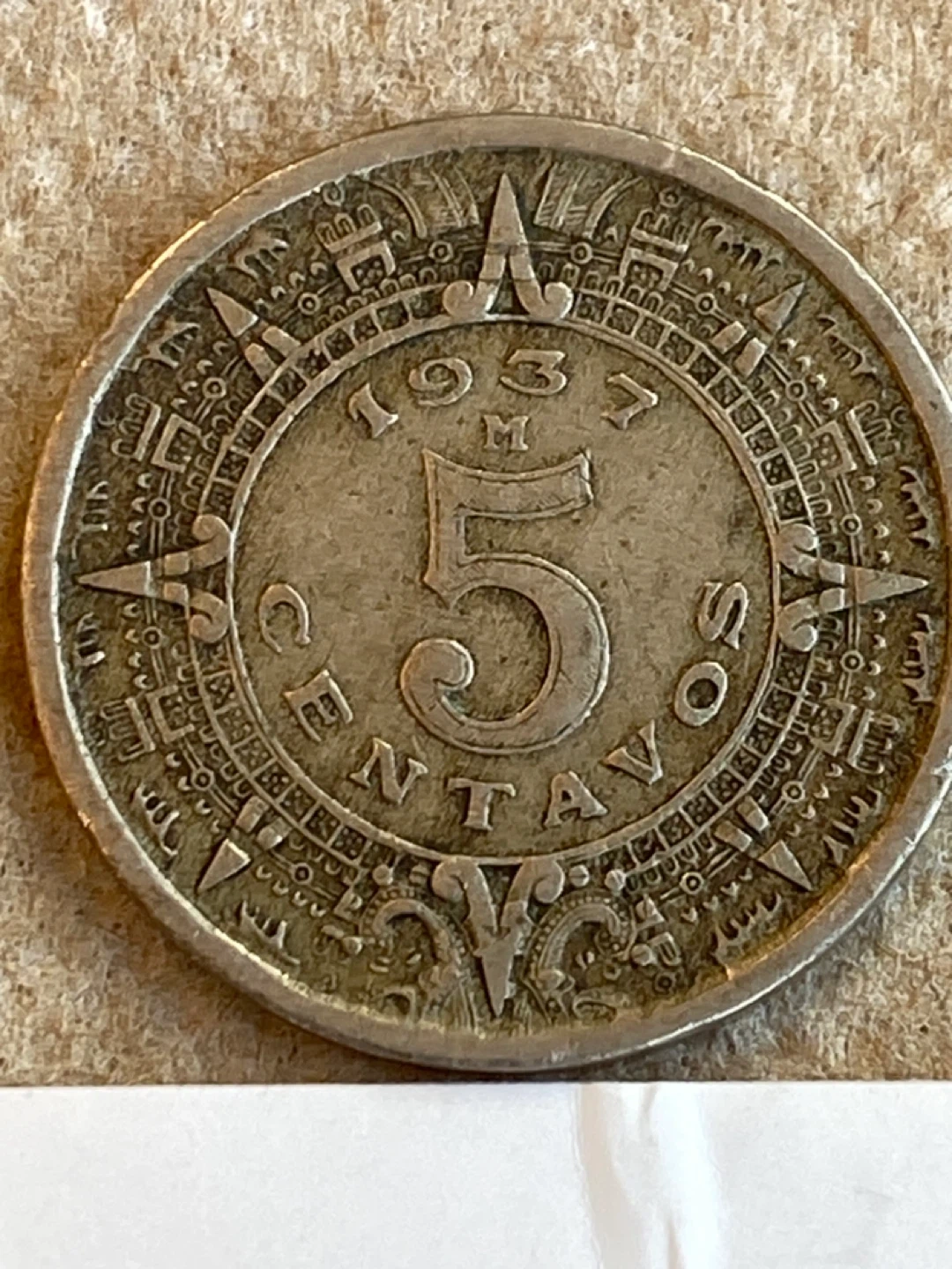 Selling a 1937 Mexico 5 Centavos coin. It's in used condition, as you can see from the photos.