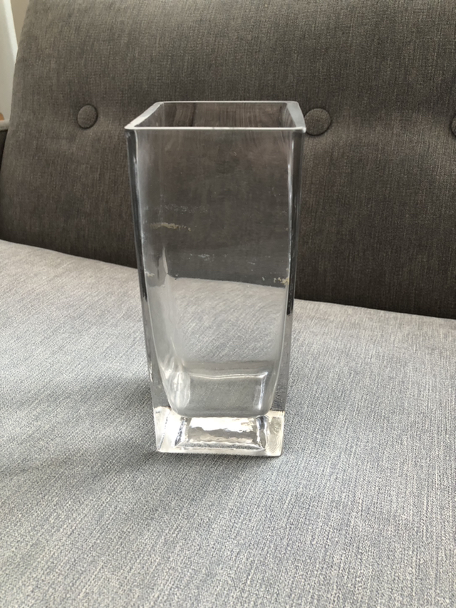Glass Vase 20cm tall x 8cm square opening Pick-up only.