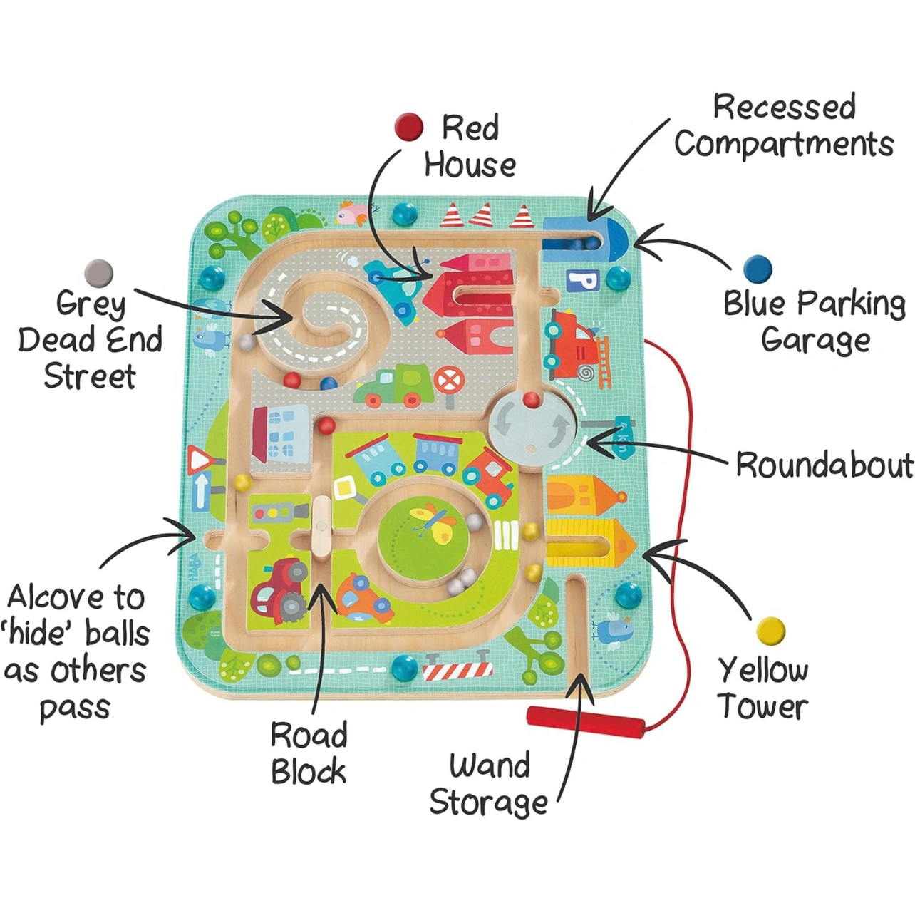 Town Maze Magnetic Puzzle Game - Learning & Education. Board measures 10" x 8.75“.