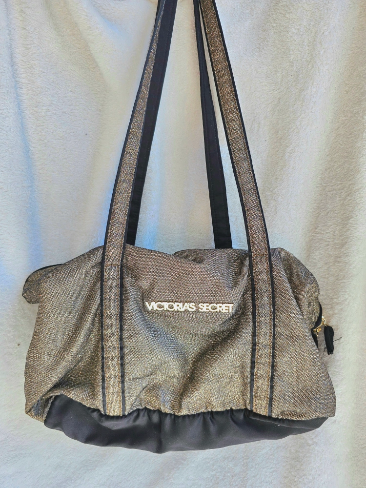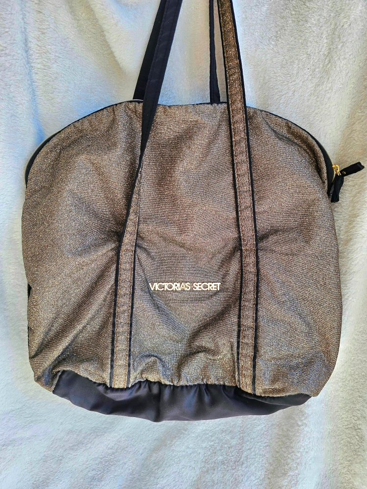Victoria Secret Gold Beige Sparkle Tote / Overnight Bag