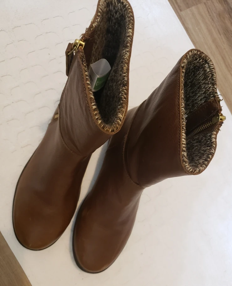 Brand new. Genuine leather. Bought for $265. Don't miss this great pair of boots. Lined from the inside as in the picture.