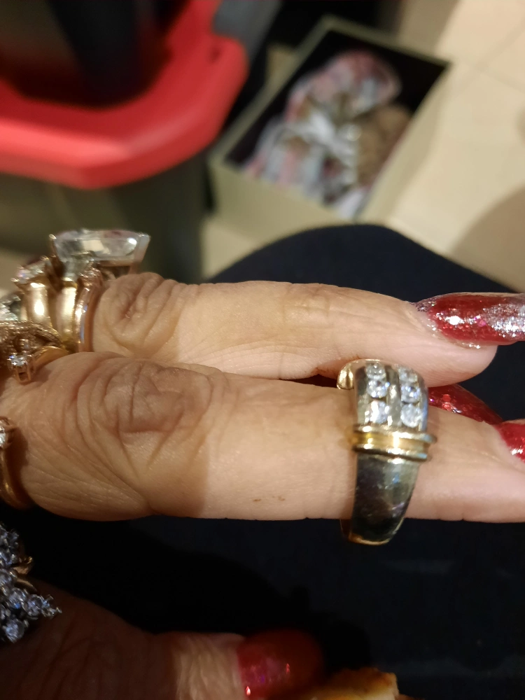 Authentic genuine 10kyellow gold large DIAMONELLE RING 2Tone band ring