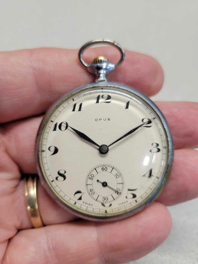 This old guy is slim and well made. Unusual font on the dial. Nice and simple. Works and keeps time.