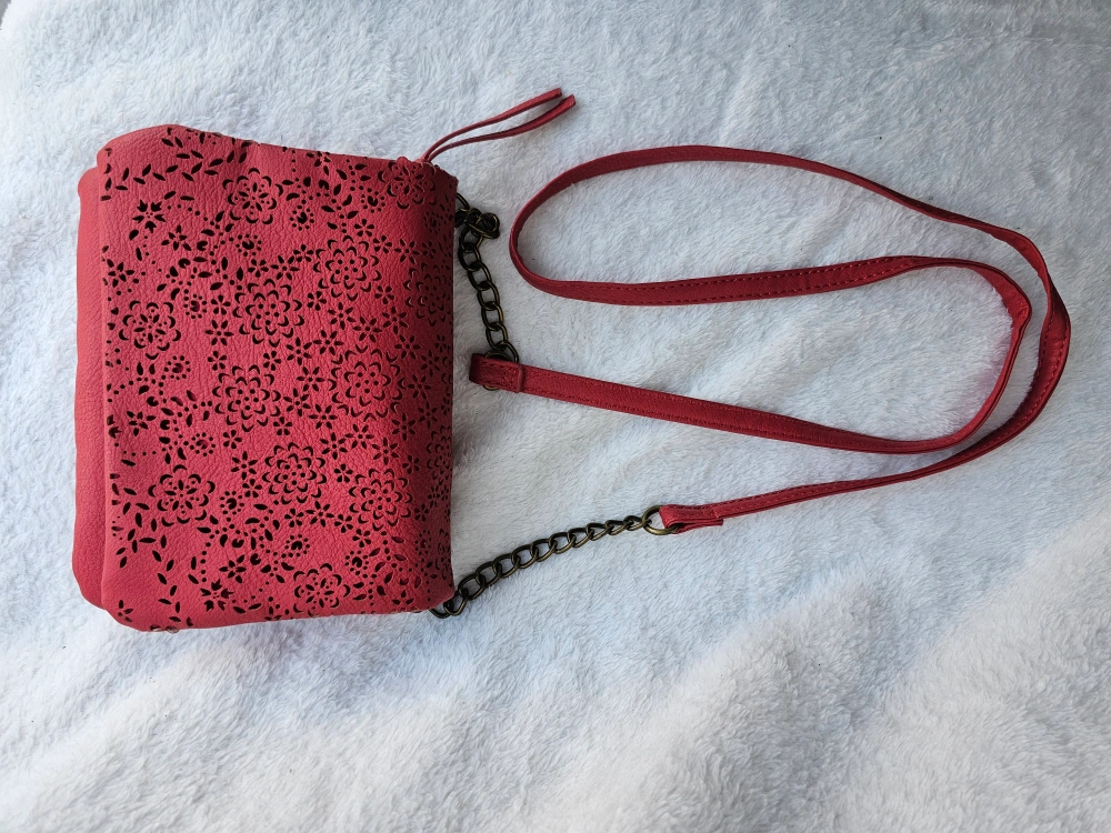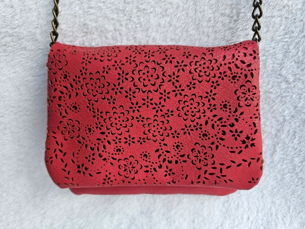 This vegan leather purse is a real beauty!! It's a lovely soft red lipstick colour and the cut out floral design is beautiful ๐ ๐ธ