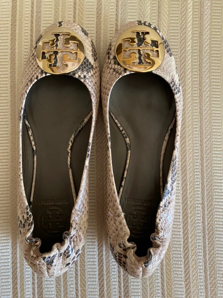 Worn only a couple of times. In excellent condition. Leather skin print will go with anything and very comfortable.