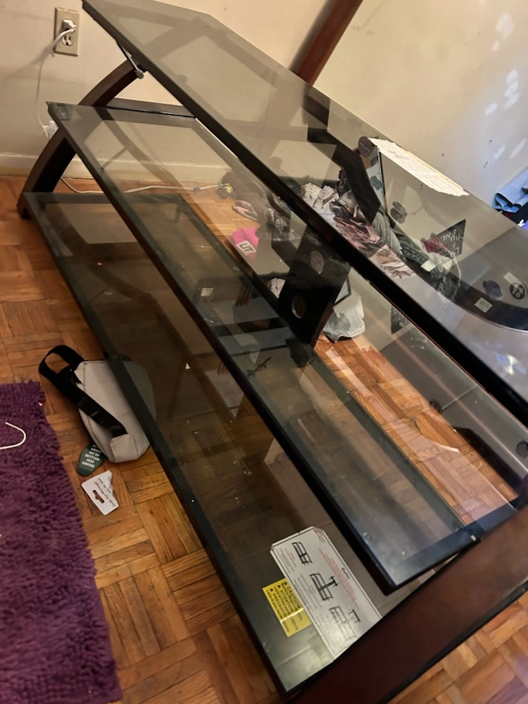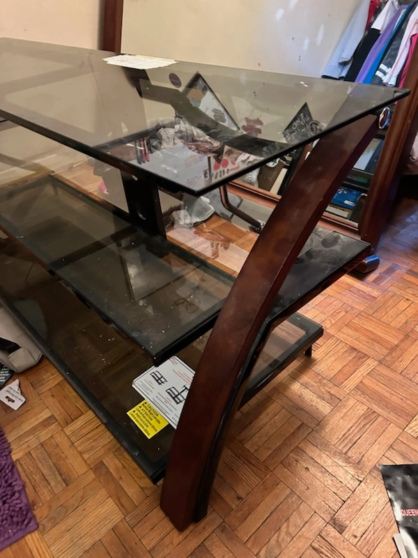Black glass and wood TV stand