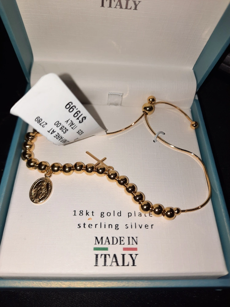New with tags 18k gold over solid sterling silver. Beaded charm bracelet with a Catholic charm and a cross ✝️ ✨️ made in ITALY 🇮🇹