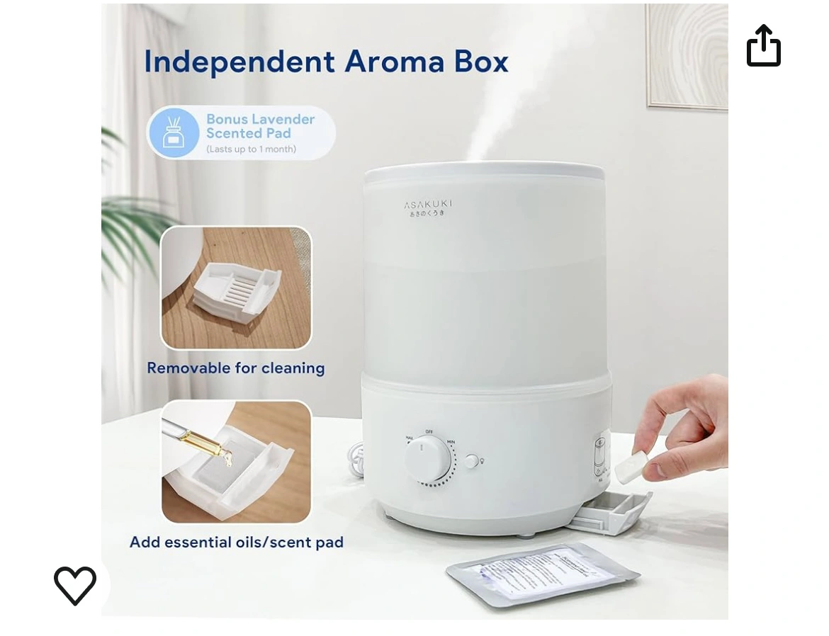 ASAKUKI humidifiers+Aroma diffuser+night light