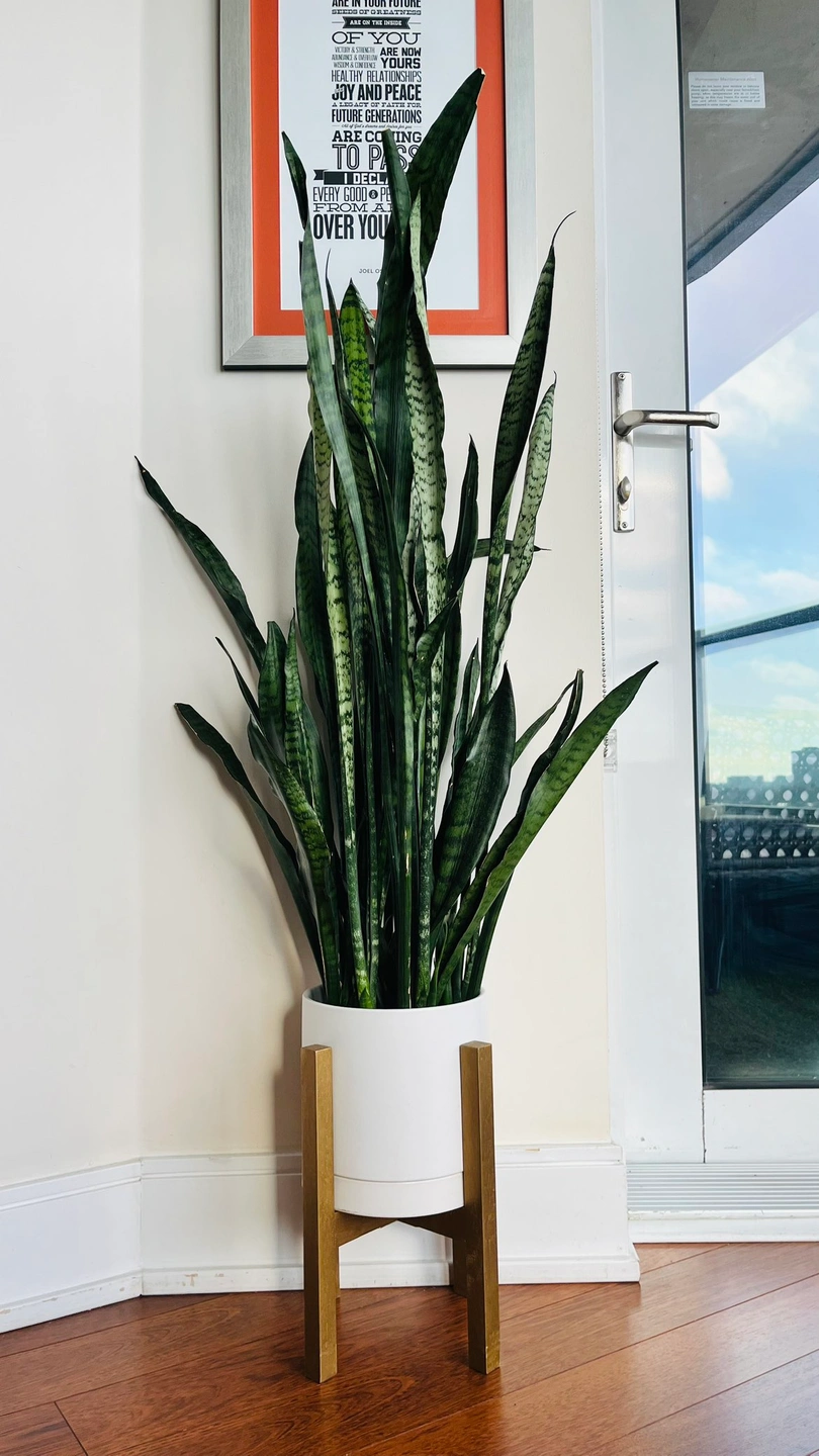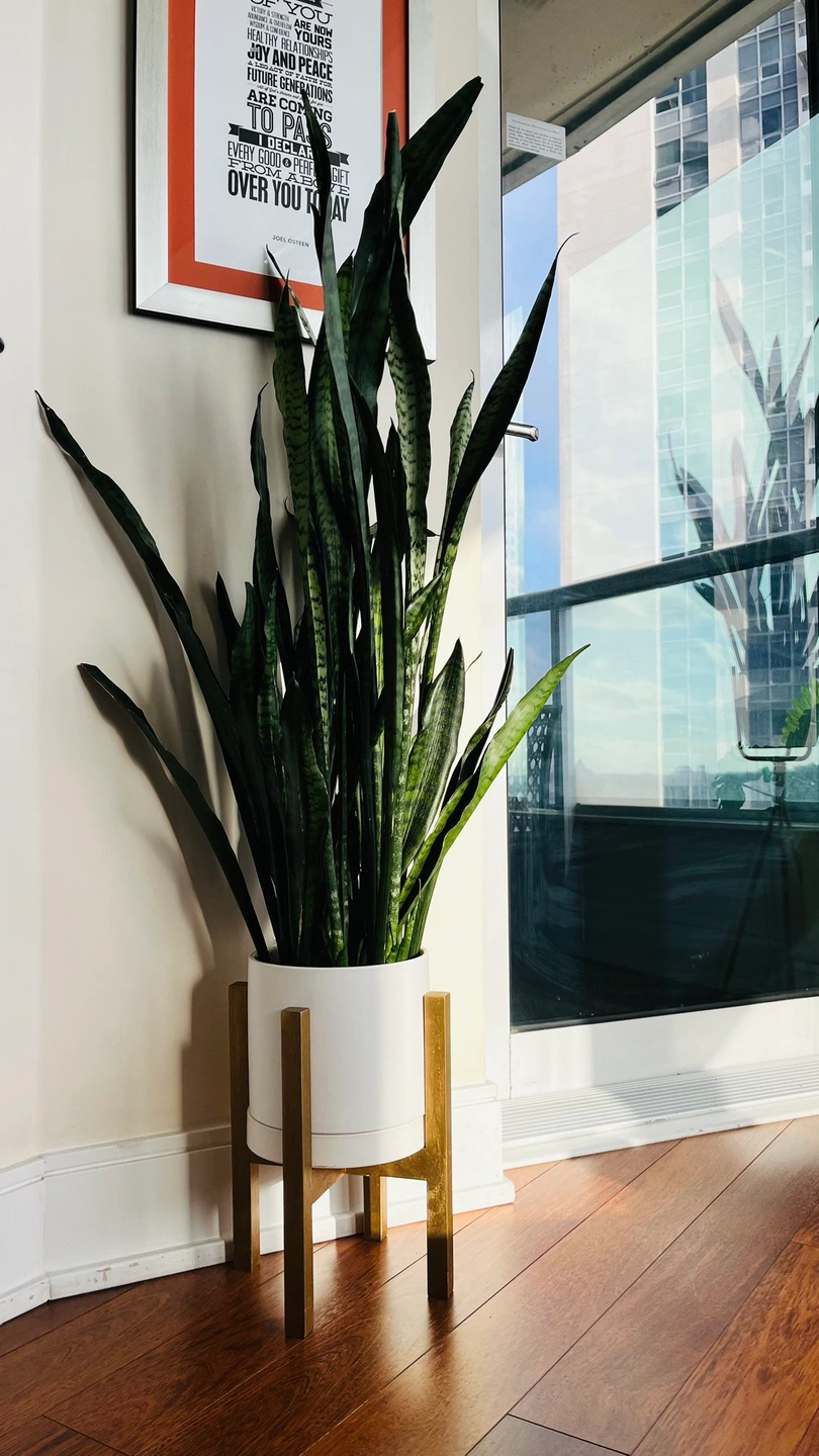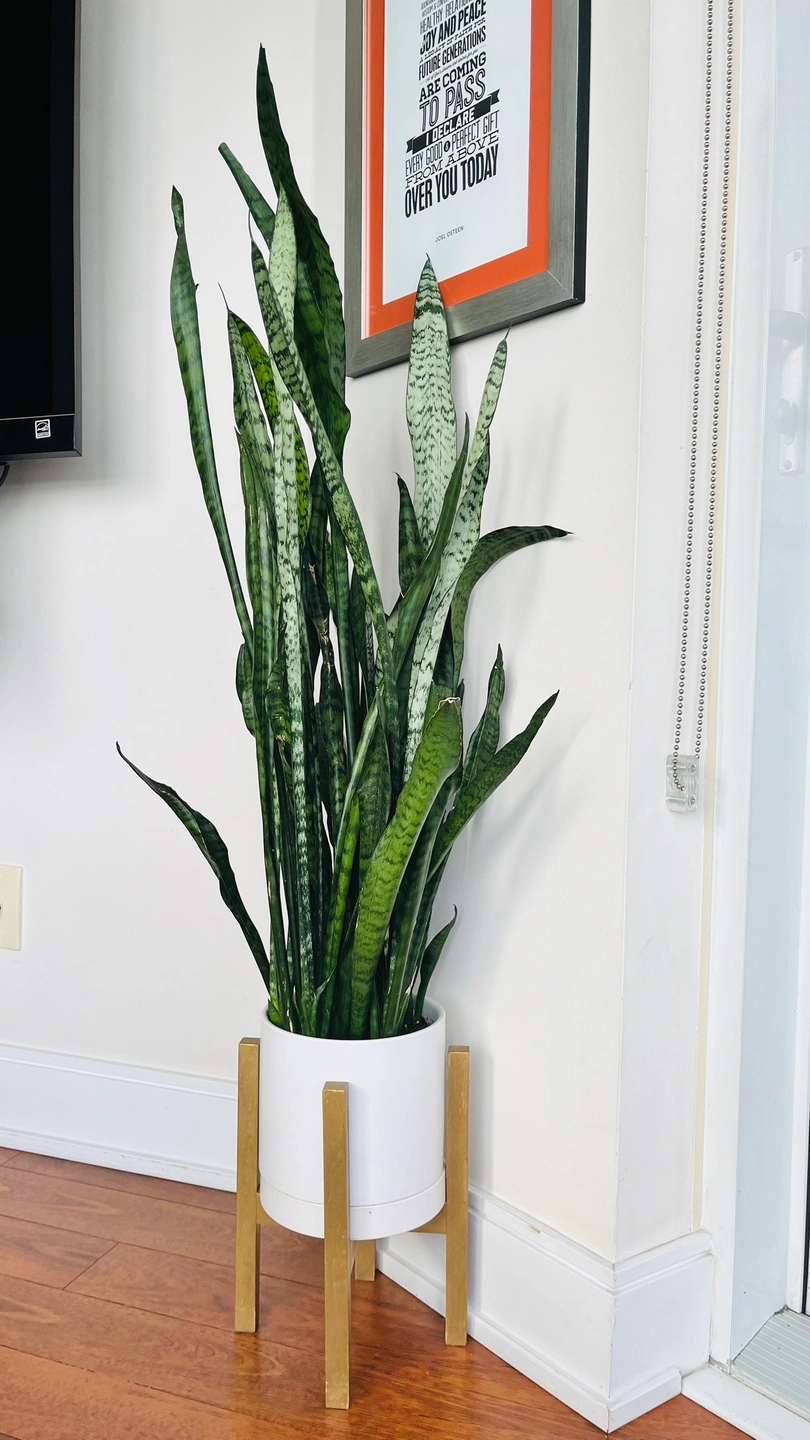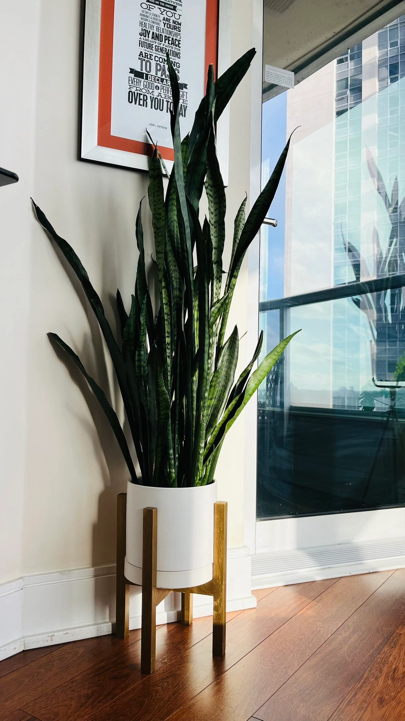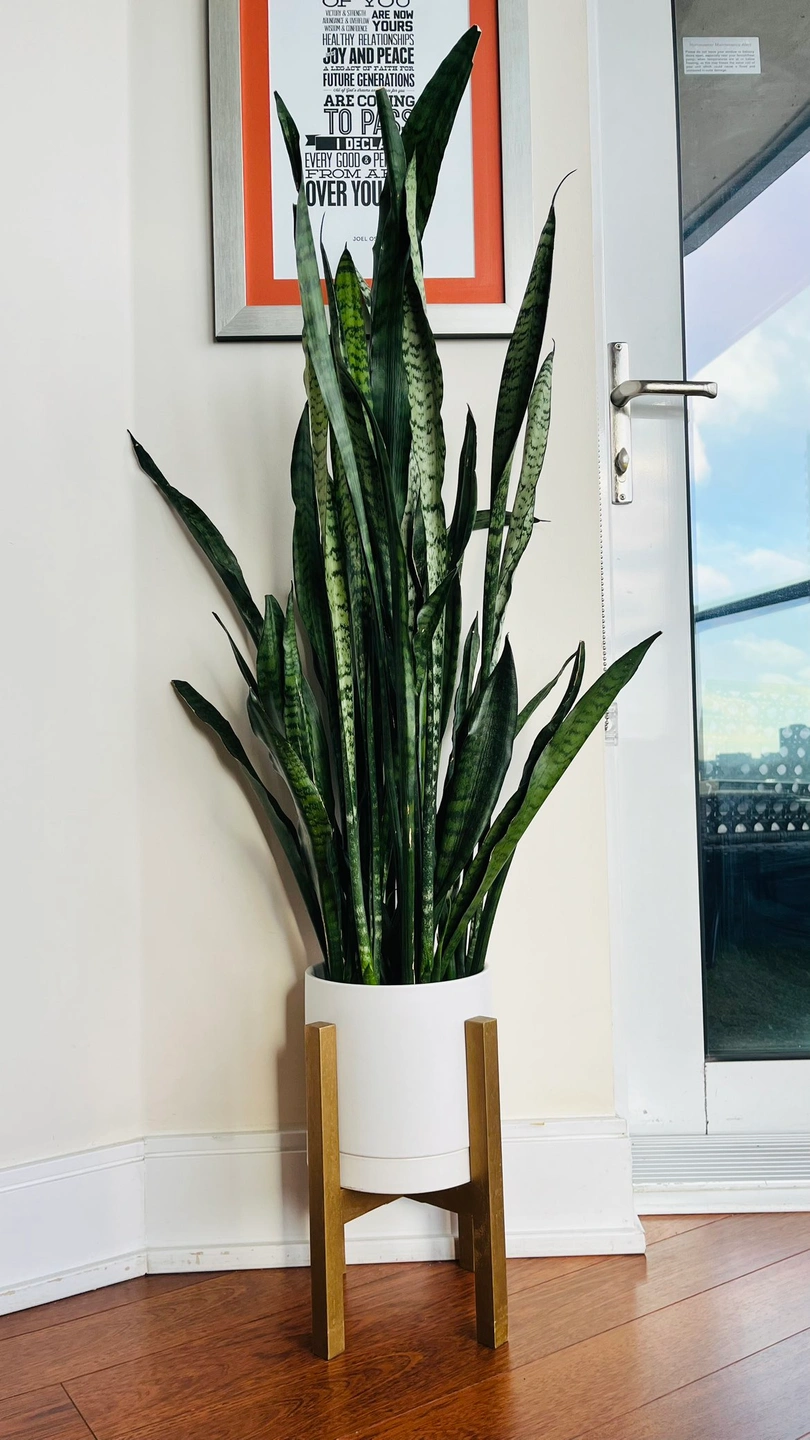 Healthy Snake Plant in White Planter W/ Gold Stand