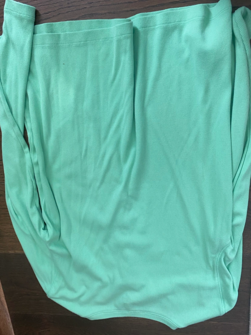 Worn a few times in 2023. It very light weight and comfy. Colour is very bright Lime-Aqua colour. Still great condition.
