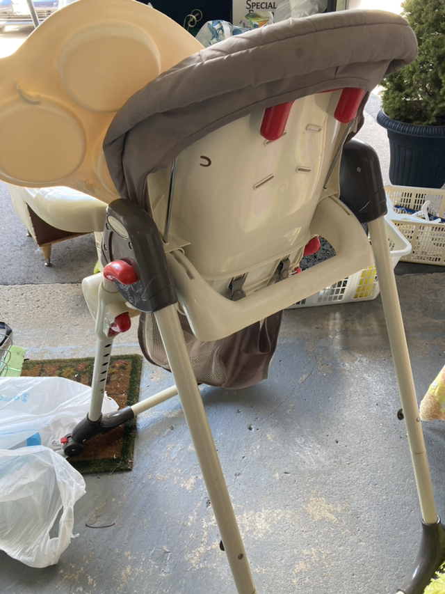 Great for grandmas house. Height adjustable. Has two trays. One for eating and one for playing