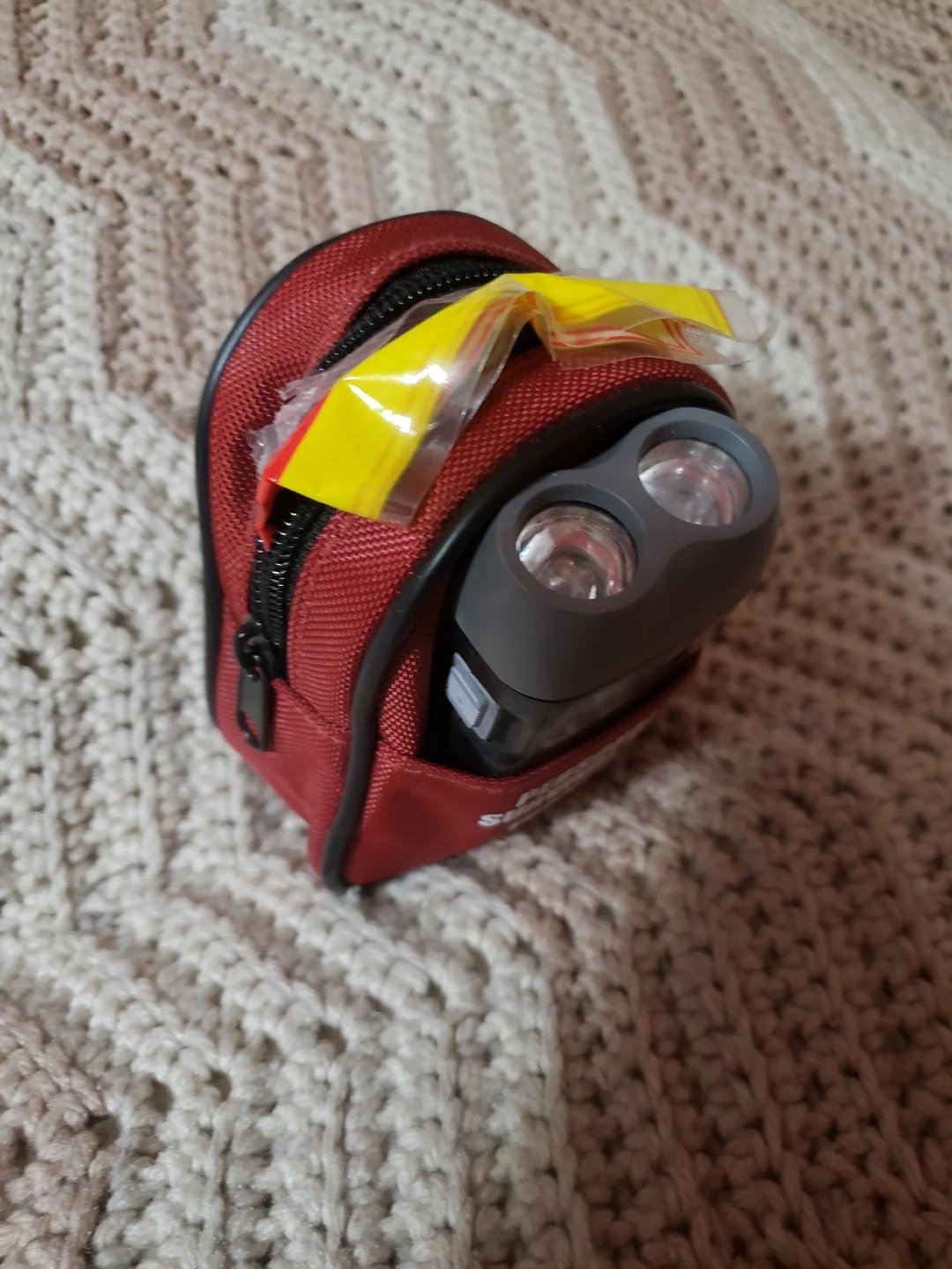 #freecycle, personal survival kit, include instant body warmer, reflection sheet, flashlight(need new battery), all in one cute tiny red backpack.