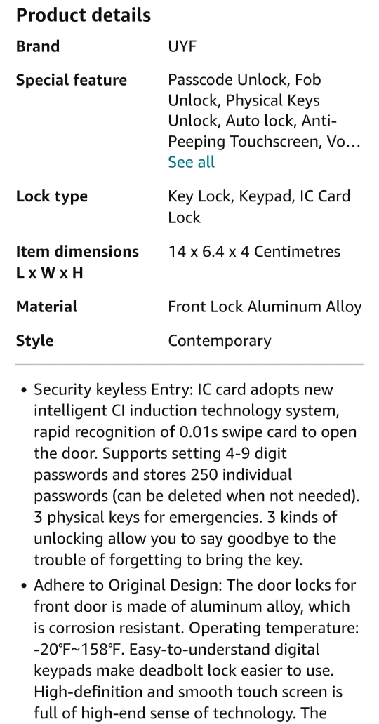 UYF Electronic Keypad Deadbolt Lock with Levers