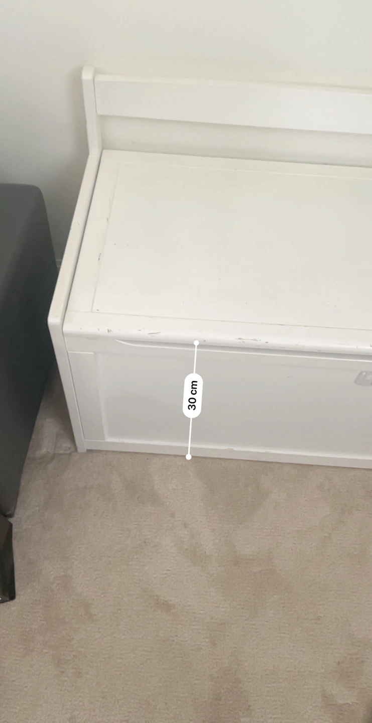 Sold as is- has scratches around the storage unit. However, the frame work is firm nothing painting can’t fix. I was going to paint it myself and make it brand new, but my new place doesn’t have space for it 😞