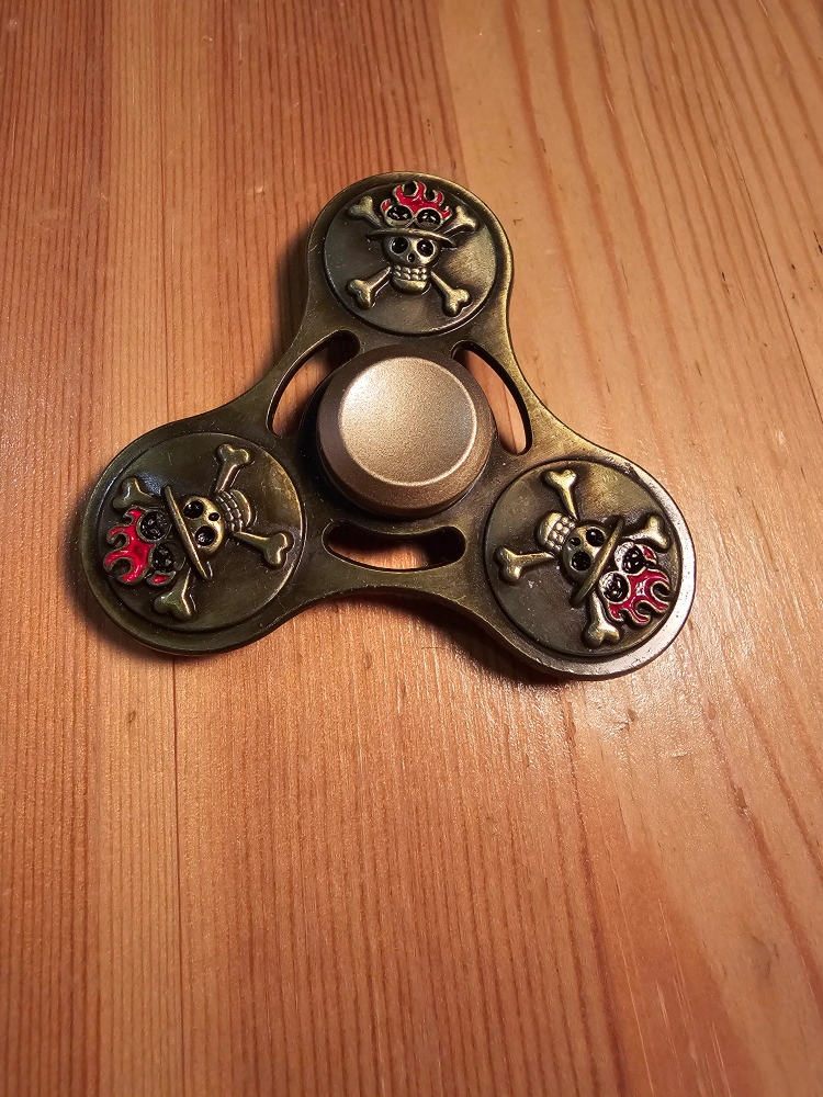 Fidget spinner with details of Ace's jolly roger from the One Piece anime and manga. Spins really smoothly and made from high quality metal! Would be a great addition to a One Piece fan's merch collection