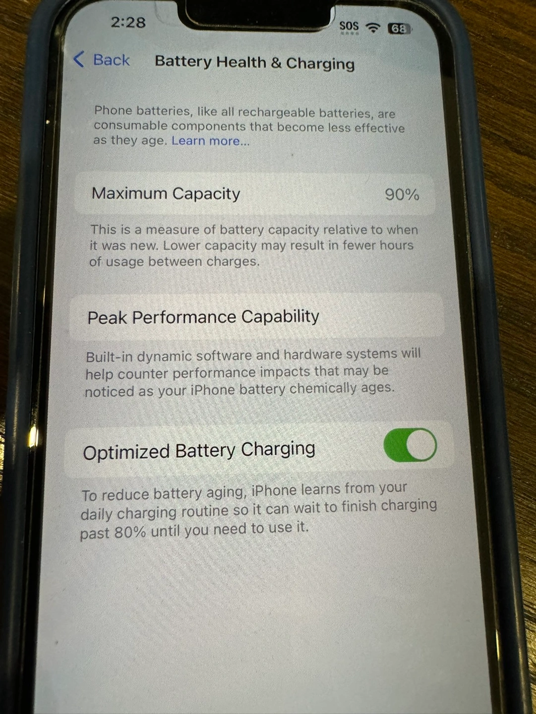 The battery health is 90% (see photos) yet, the phone still charges to 100%.
