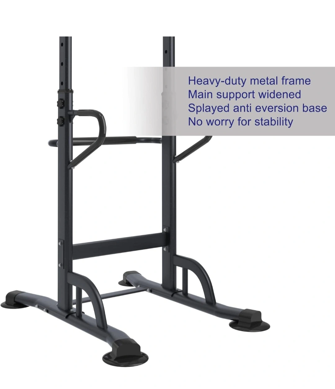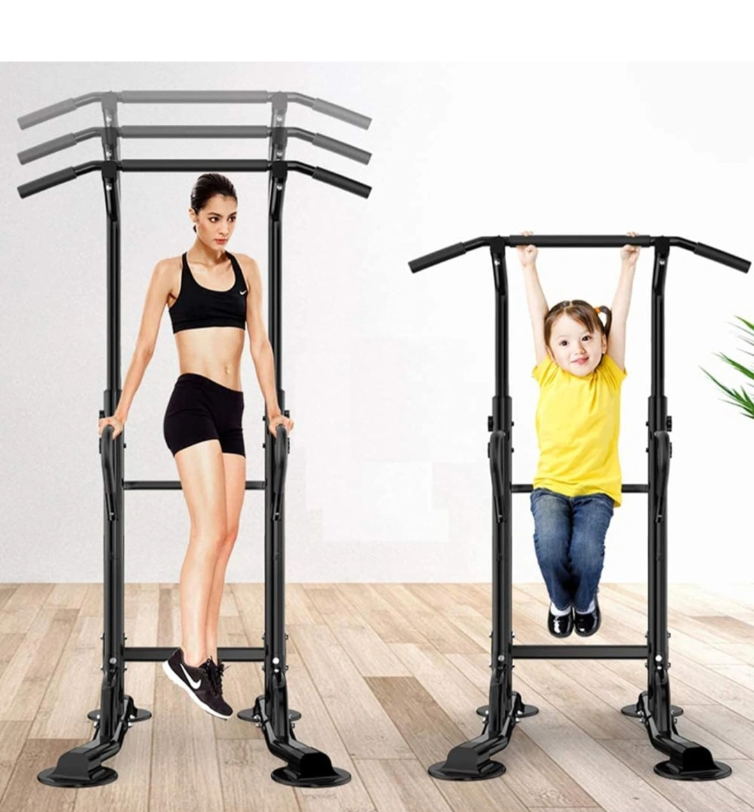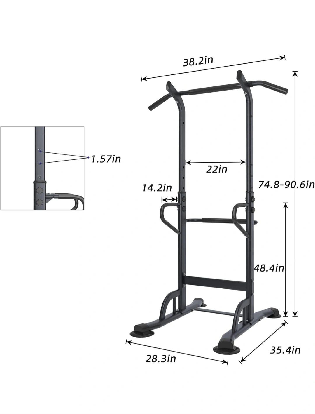 Hieght Adjustable Power Tower: Overall size: 35.4"x29.1"x61.0"~90.6"(inches). Weight capacity: 333LBS. This power tower has 6 height adjustments, adjust with the gear regulation to meet your need.