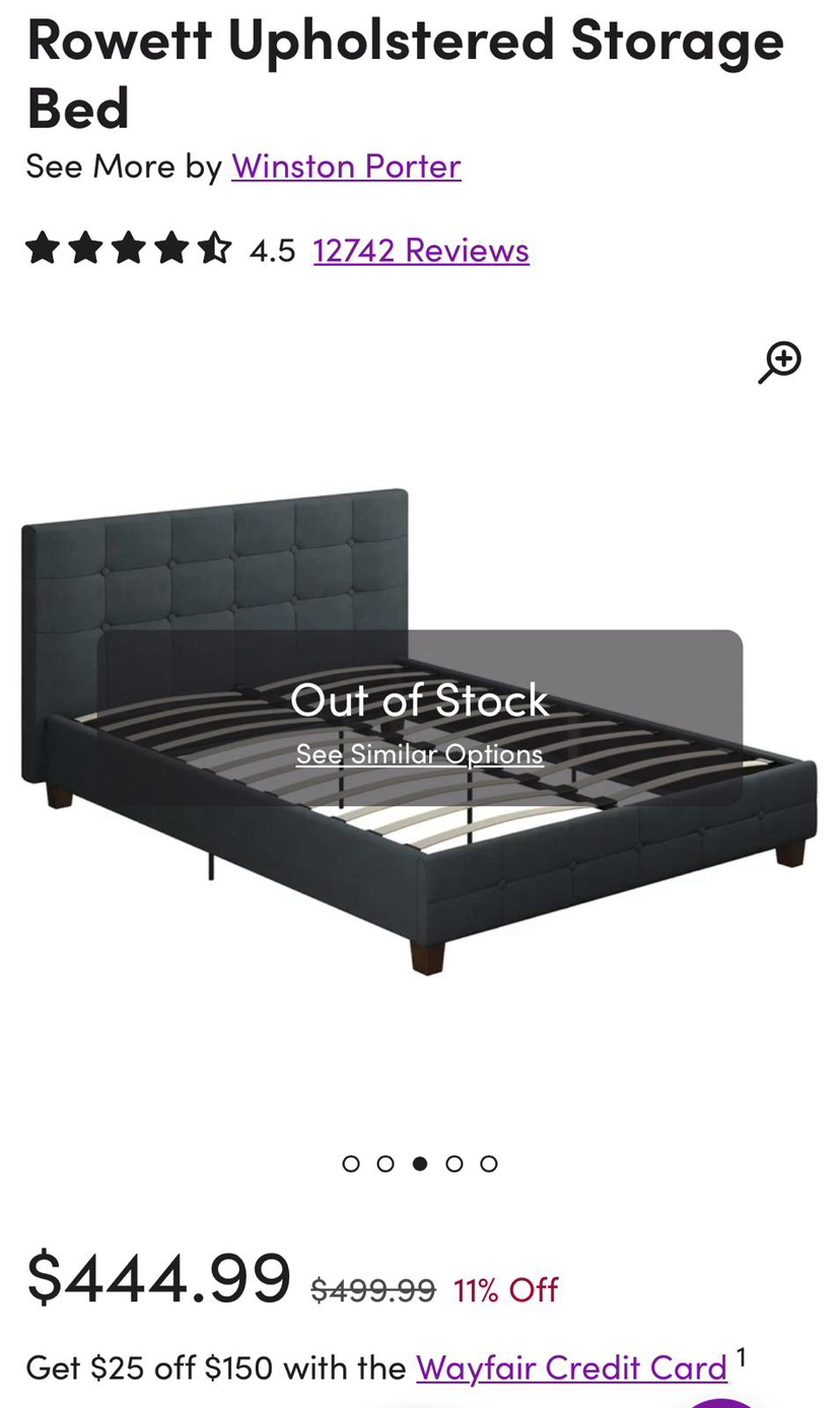 Upholstered double bed and mattress