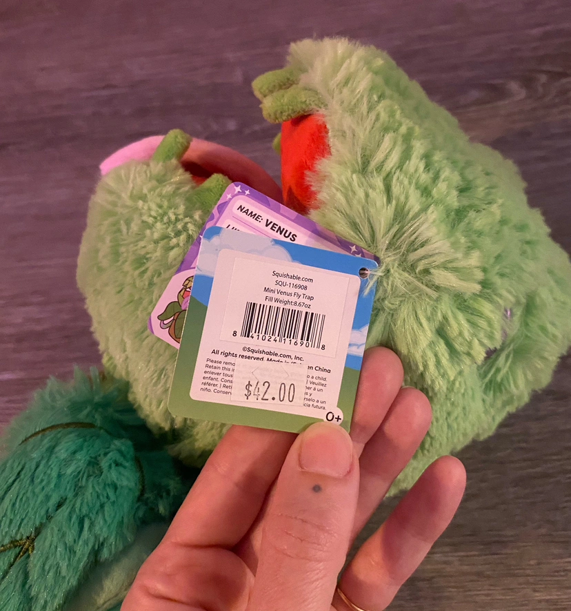 Brand new with tags, mini Squishable Venus Flytrap. Purchased as a gift, but ended up giving something else, price tag is still on. Measures 7” wide x 6.5” deep x 9” high.