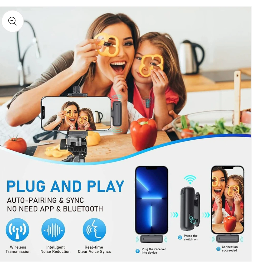 Wireless Microphone for iPhone iPad, 2.4 GHz Wireless Lavalier Microphone with Charging Case for Recording, Live Streaming, YouTube, TikTok, Facebook, Noise Reduction/No APP & Bluetooth Needed (Black)