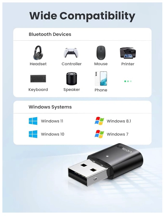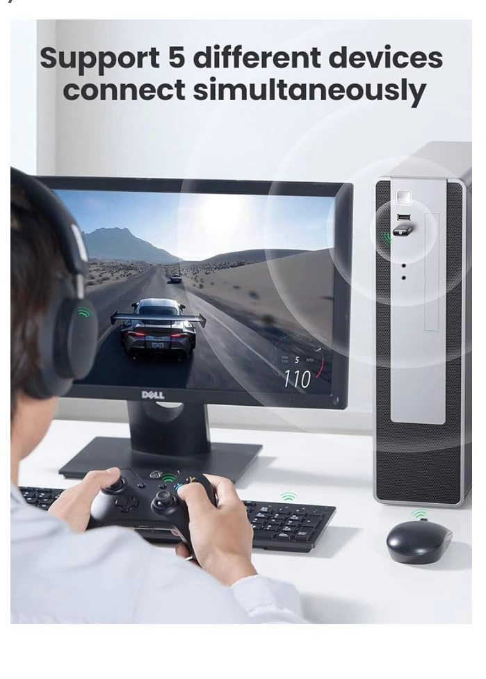 UGREEN USB Bluetooth 5.0 Adapter, Wireless Bluetooth Transmitter Receiver for PC, 5-Devices Pairing Simultaneously, Bluetooth Dongle for PC, Laptop,Keyboard,Mouse,Speaker,Printer, Windows 11/10/8.1/7