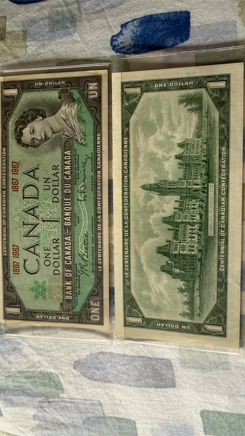 Selling a 1967 Canadian one dollar bill. It's a Centennial of Canadian Confederation edition. Great for collectors!