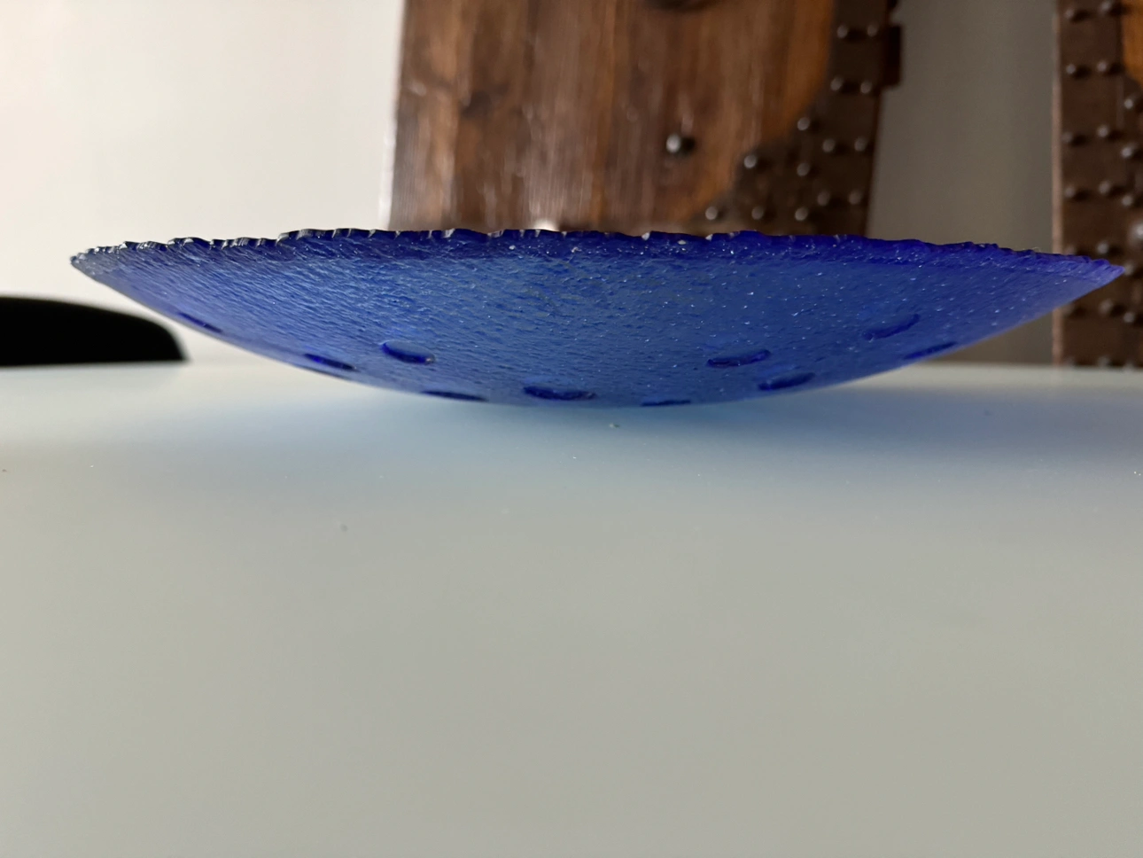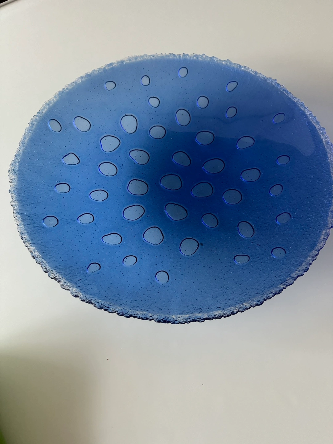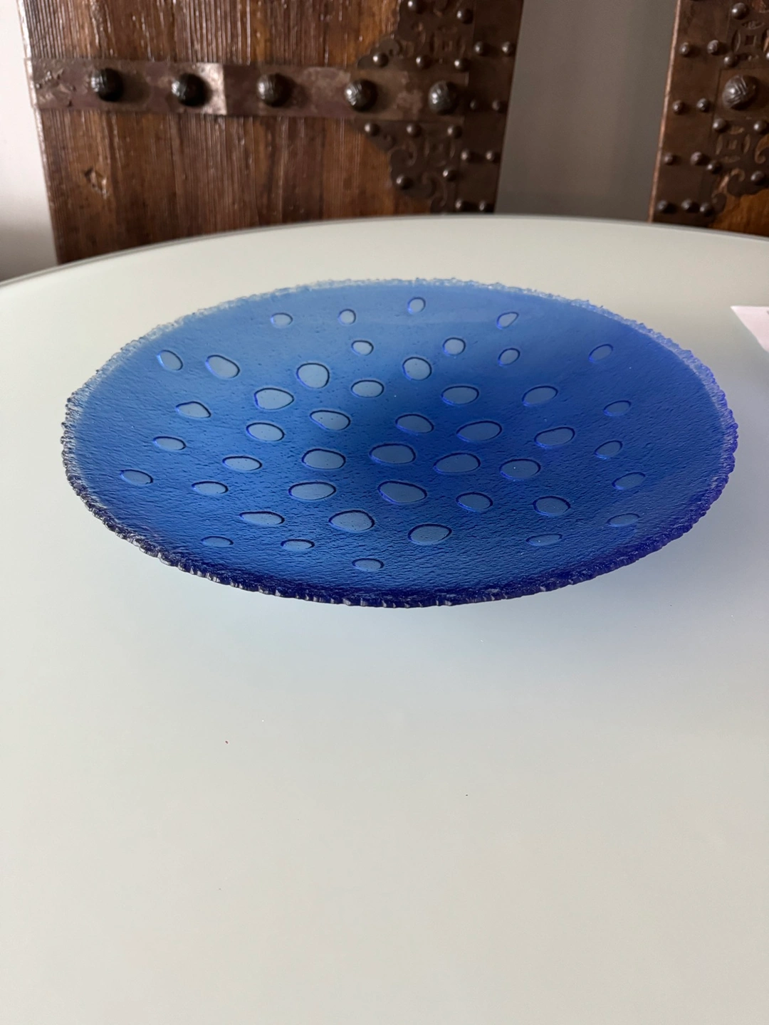 Large 16.5" artisan glass bowl or platter makes for a beautiful centrepiece in living room or dining table. Created by a glass artist in California.