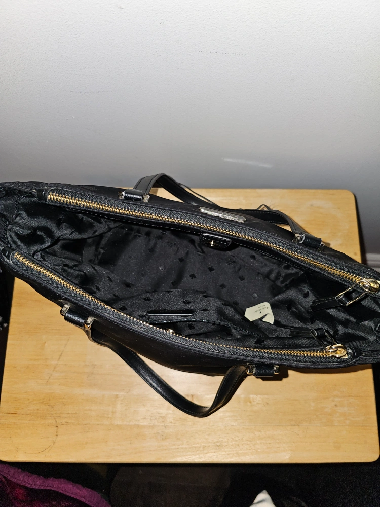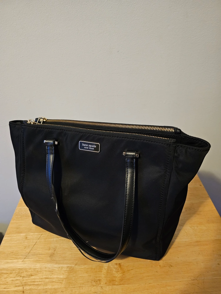 Kate Spade Purse. In decent condition. The handle is a little warn down, and there isn't a longer handle with this. Other than that, it's a great bag. Fine to meet on the Danforth or Scarborough Town Centre.
