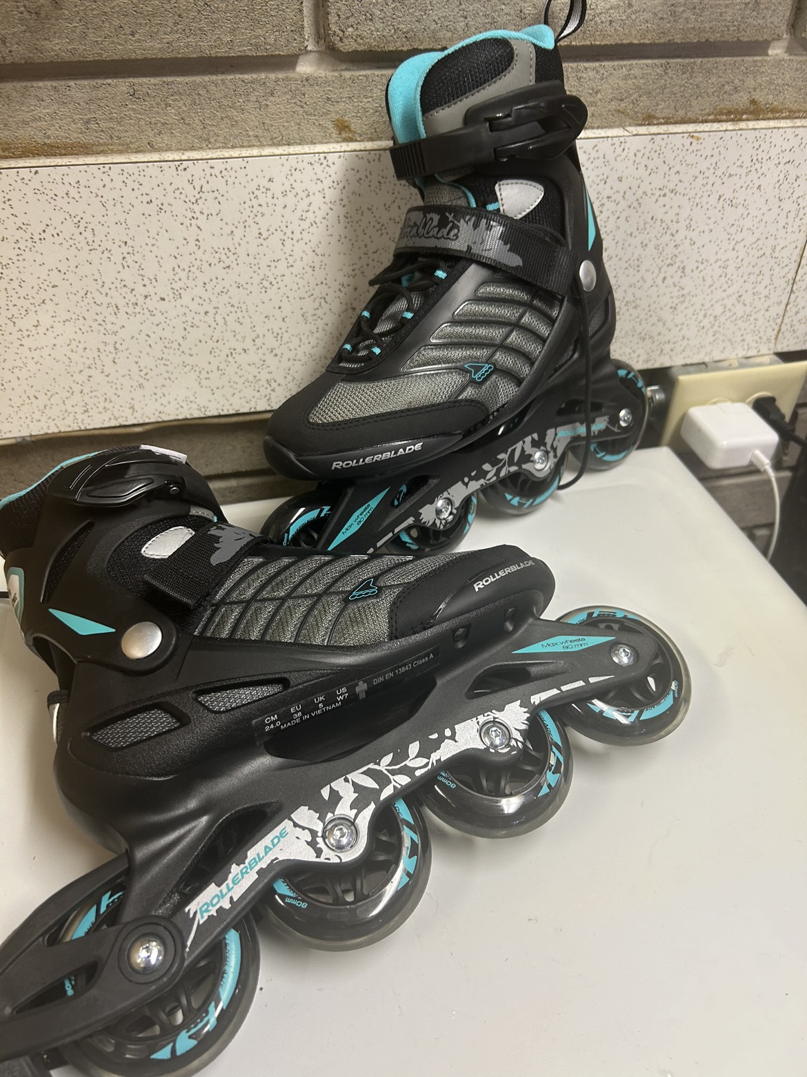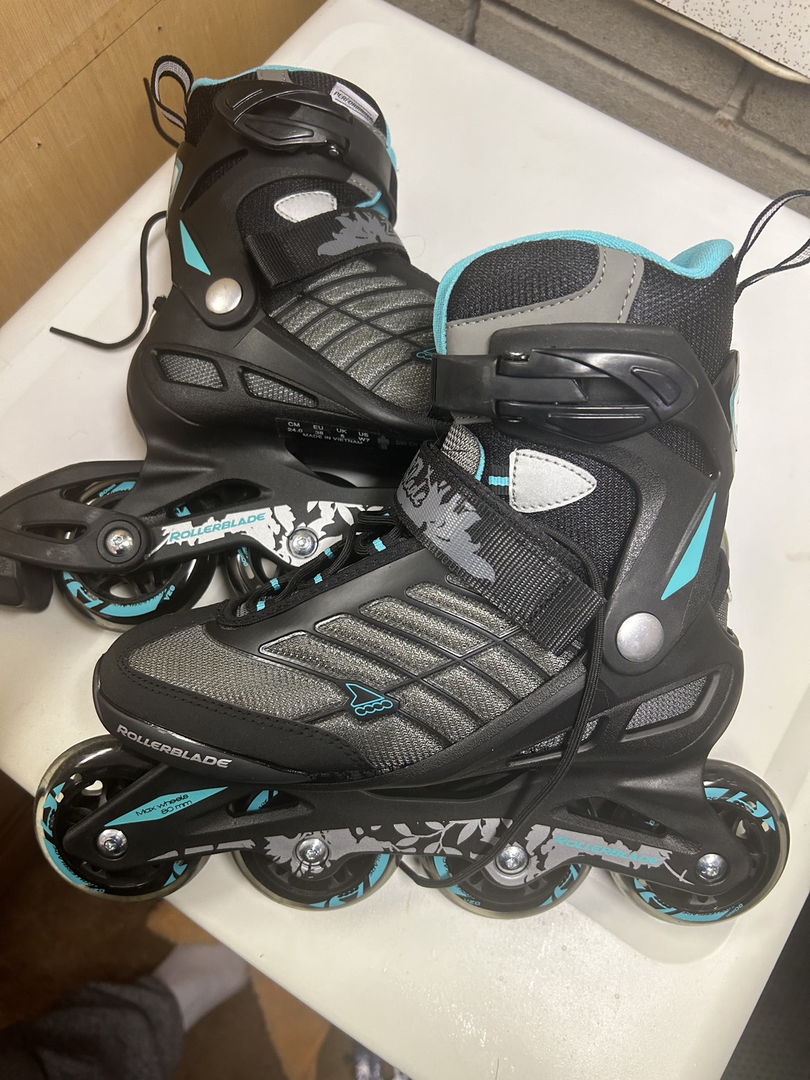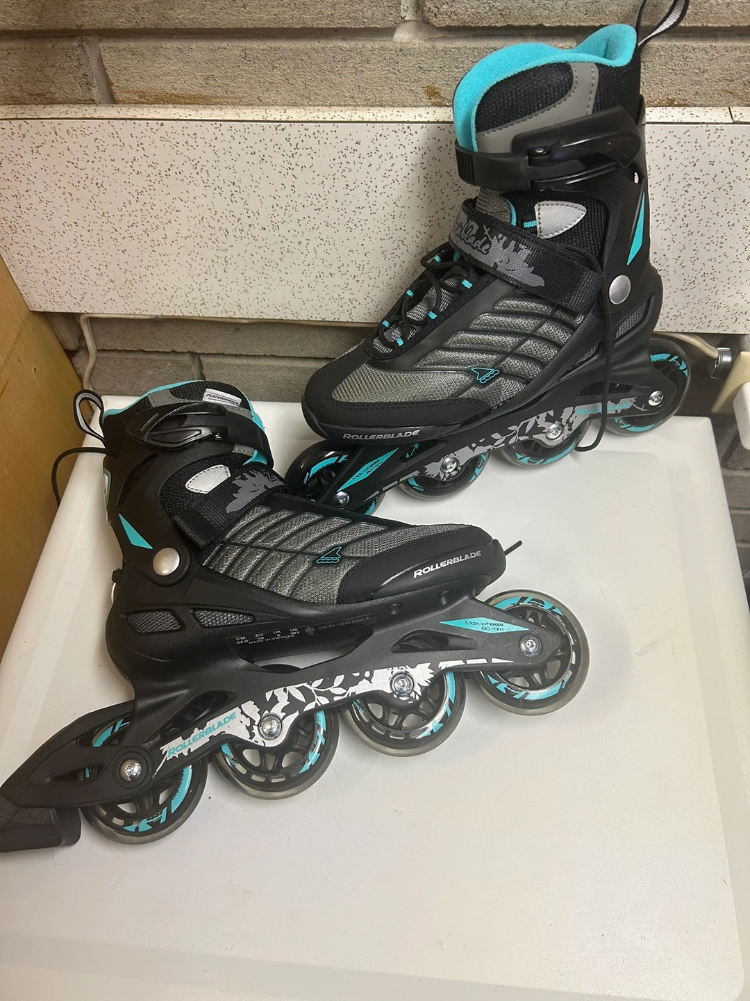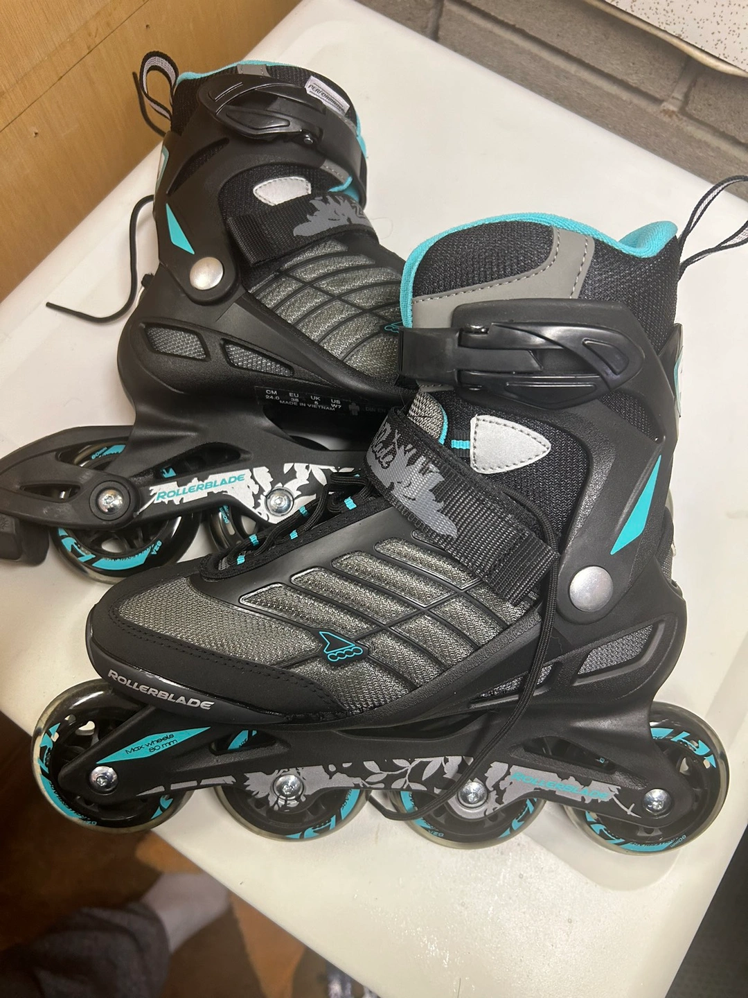 Get ready for spring! Never been used, top of the line Rollerblades. Women’s size 7. Great deal, They go for $300 (https://www.walmart.ca/en/ip/Rollerblade-Zetrablade-Women-s-Adult-Fitness-Inline-Skate-Black-Light-Blue-US-Women-s-7/PRD3ANG66SEGSQU)