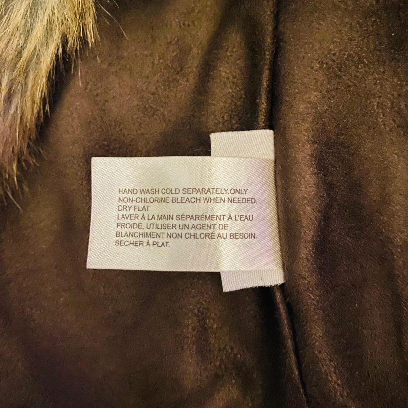 Soft brown faux suede on the inside and absolutely fluffy and cozy faux fur on the outside.