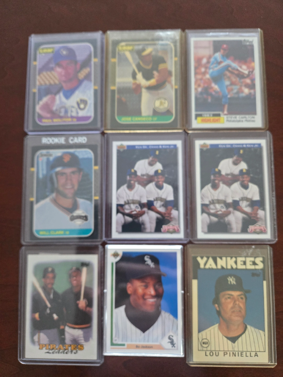 Selling a collection of 1972-1992 baseball Rookie Cards and Star cards. 88 Card Lot. Mint Condition. Great for collectors or fans of the sport. Includes Ryan, Canseco, Molitor, Clark, Griffey, Thomas, Bonds, Banks, Henderson, Jackson, Carlton, Ramos, Alomar, Brett, Clemens, Puckett, Ripken, Lofton and many more.Take a look at the pictures for the players