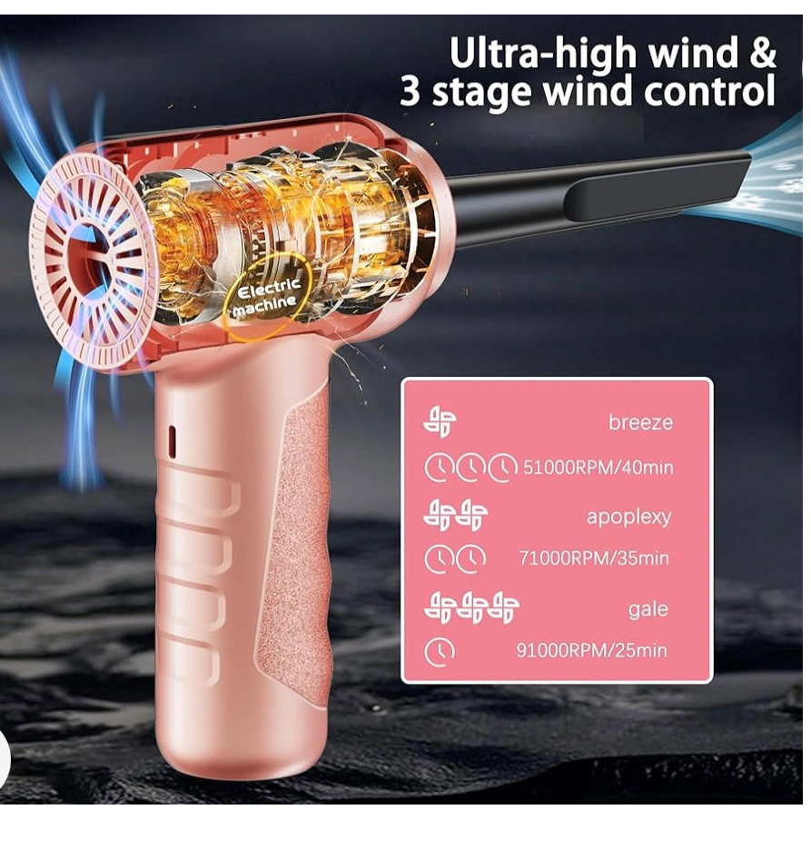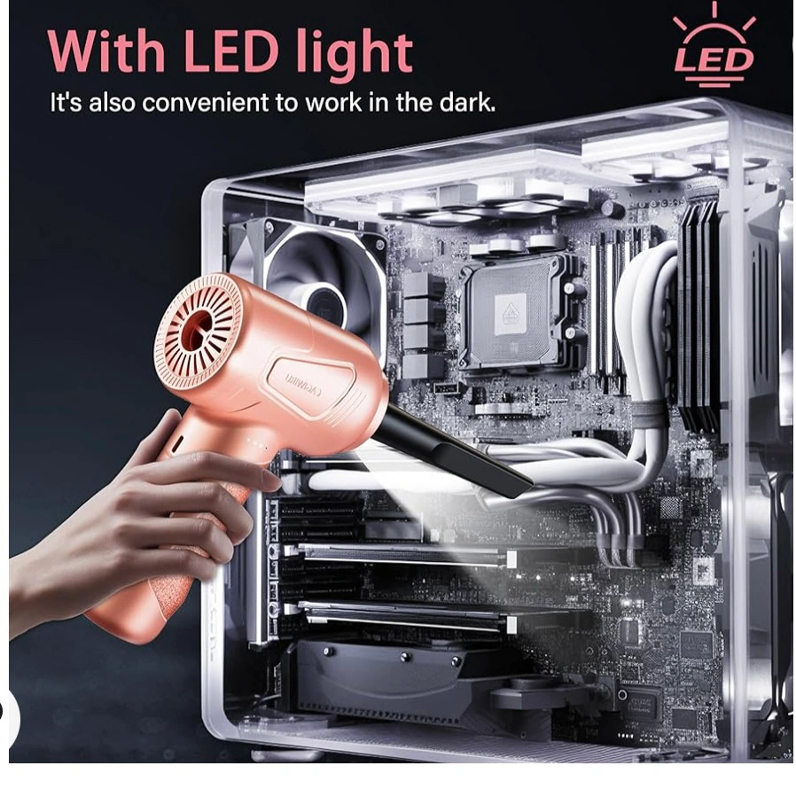 CAGIWIRU Compressed Air Duster 4.0,Cordless Air Blower,Electric Air Duster for Cleaning Keyboard&PC,Air Cleaning Kit, 3 Speed Duster Cleaner with LED-Light-no Canned air dusters-car Dusters