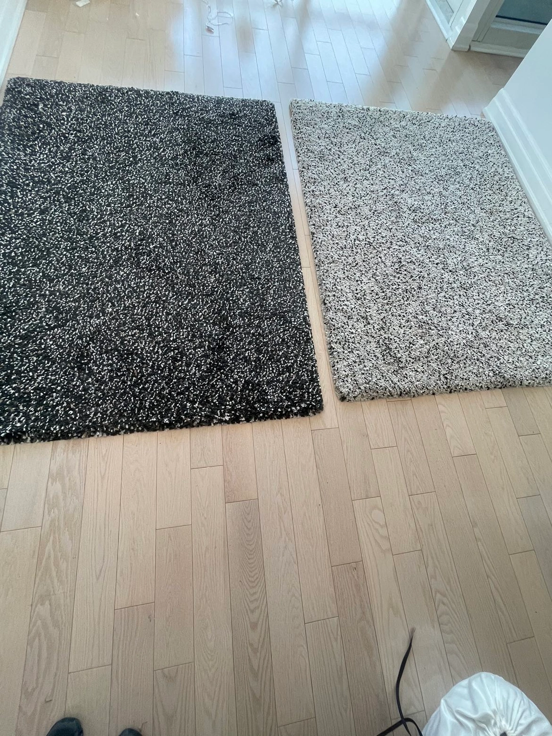 I am selling two IKEA rugs in excellent condition. The white rug has lipstick stains that can be easily cleaned.