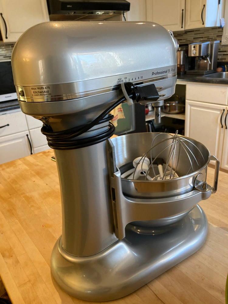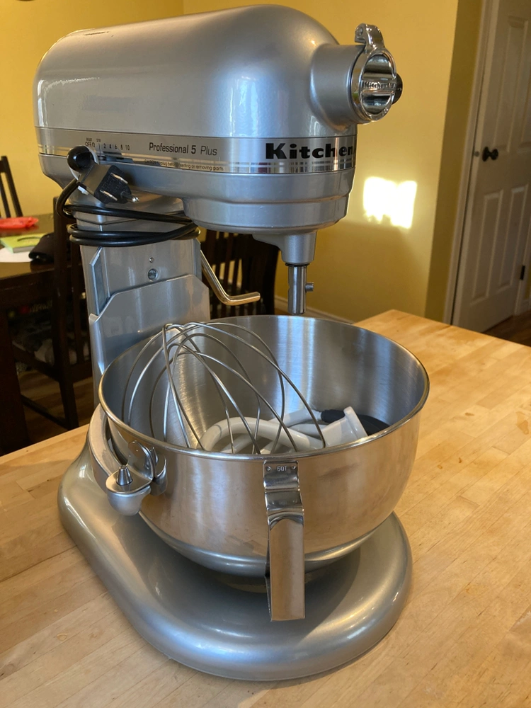 Kitchen Aid professional 5 series in great condition! The mixer also comes with the standard whisk, dough hook and beater.