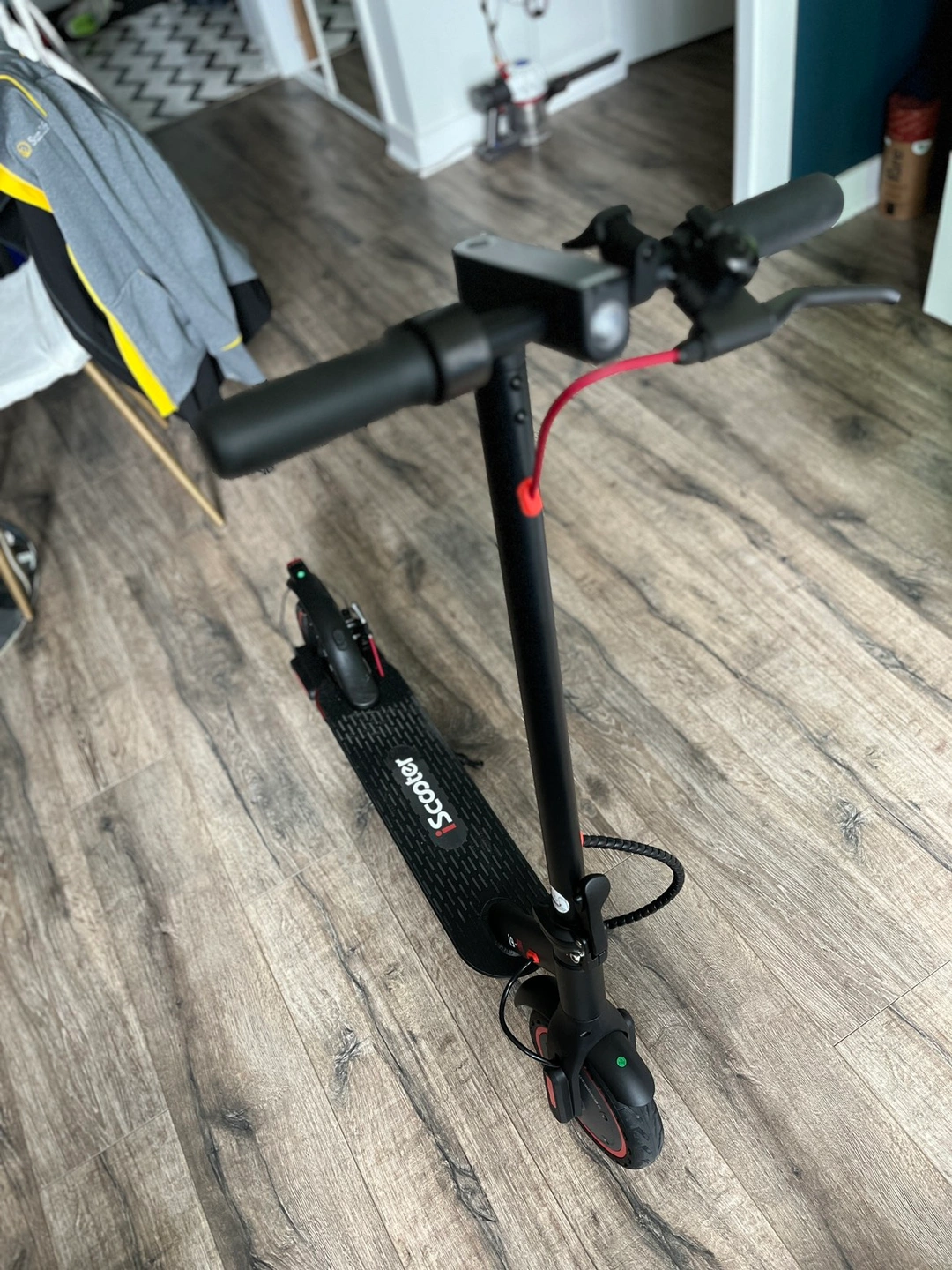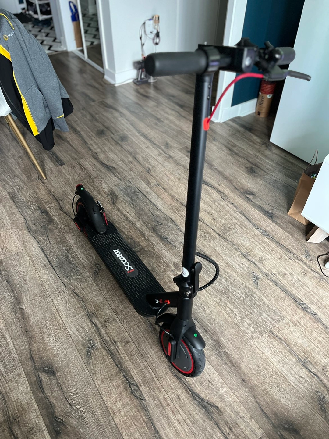 Great scooter weighing only 27lbs. New for 1 week only. 1 charge can go up to 28km and speed max is 25km/hr.