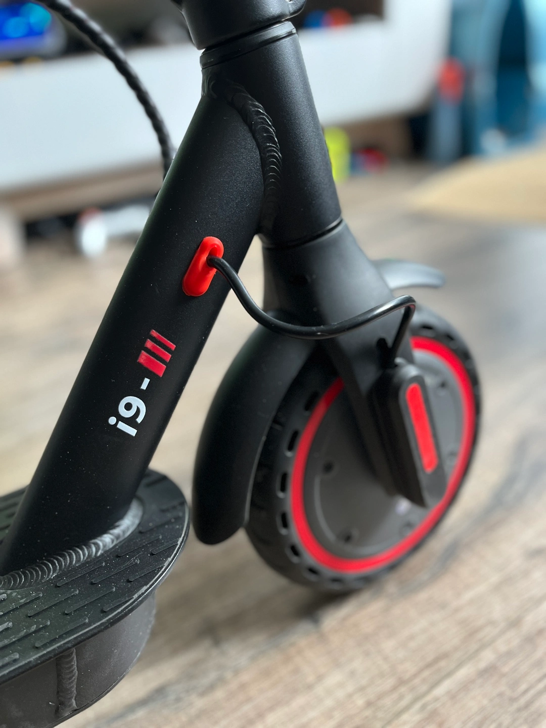 Tires: An excellent riding experience starts with the tires. The i9 electric scooter comes with tires of 8.5 inches. These tires are puncture-proof, maintenance-free, and provide better shock absorption capability.