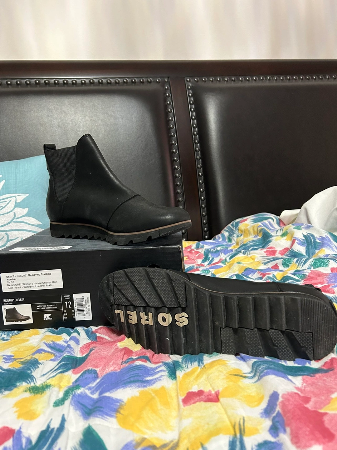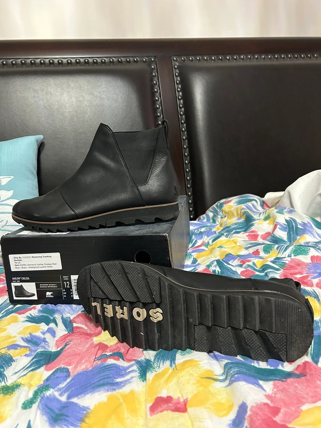 Sorel black Harlow Chelsea rain ankle boots women’s size 12