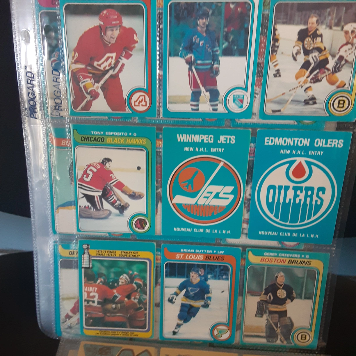 16A collection of 1979-80 O-Pee-Chee hockey cards in a binder. The binder is in good condition but may have some wear and tear. The cards are not graded. 395 cards no Gretzky rookie