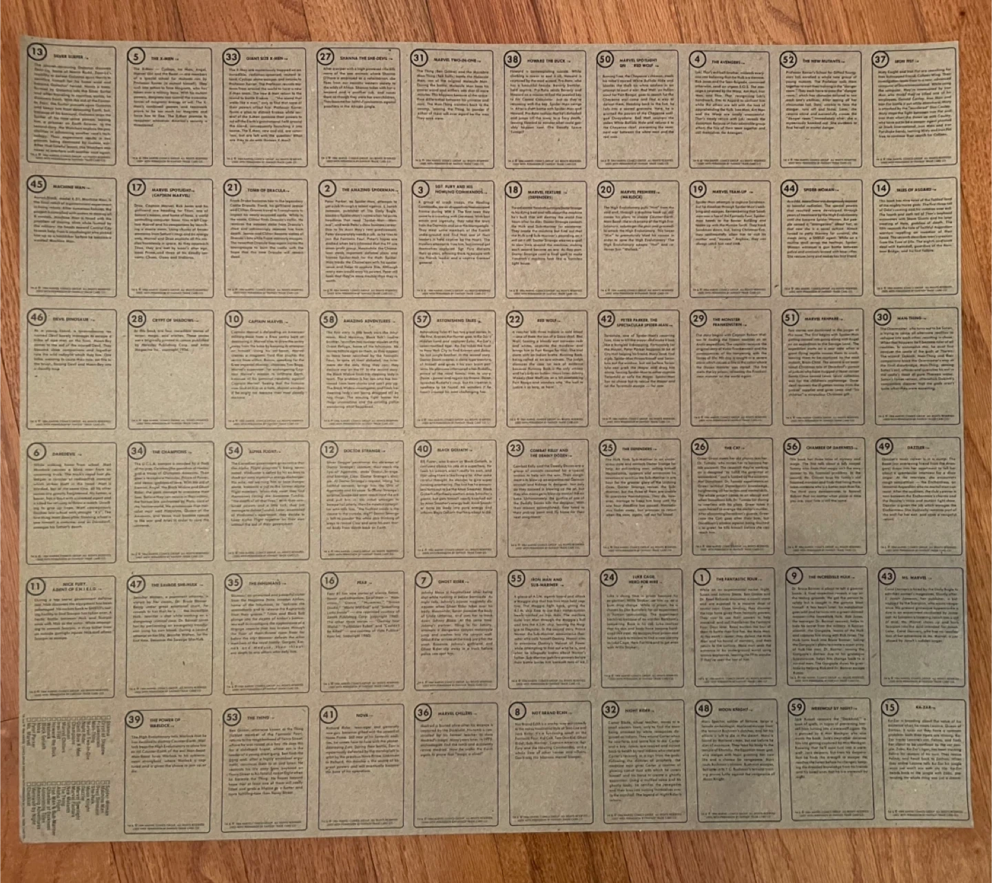 1984 Marvel First Issue Comic Covers Uncut Card Sheet
