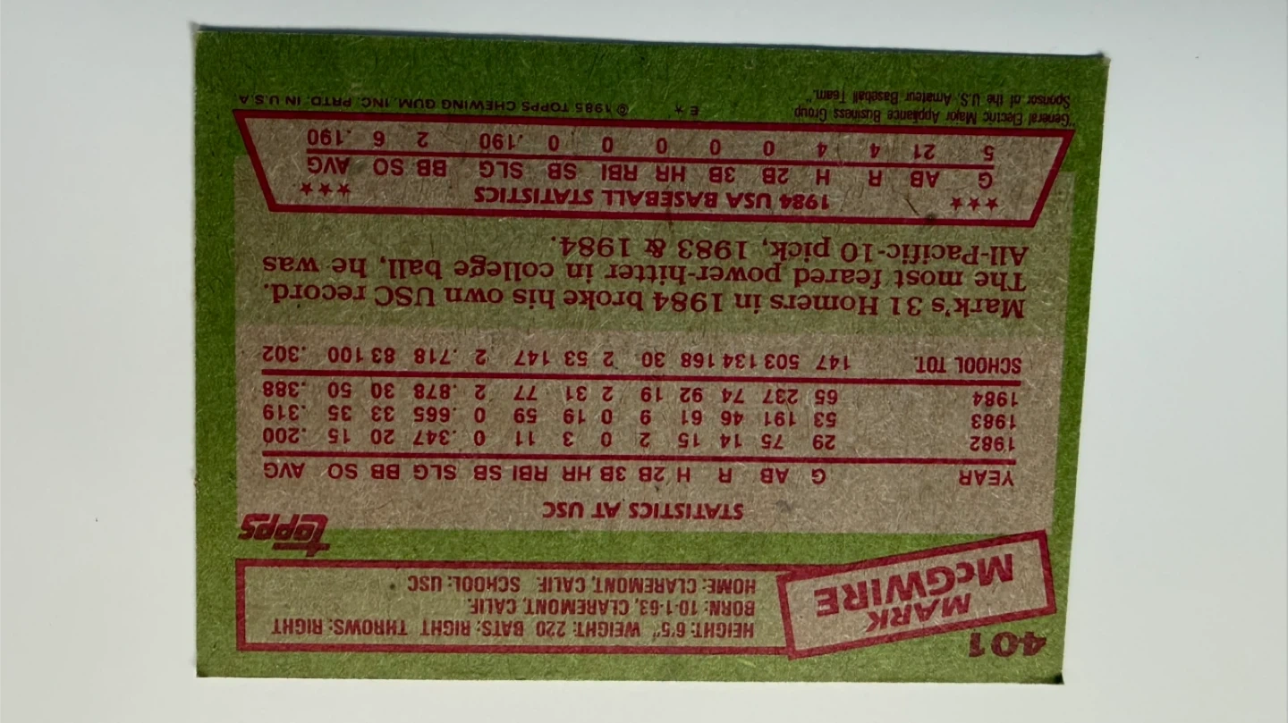 Selling a 1984 Topps baseball card featuring Mark McGwire from the 1984 USA Baseball Team! Card number 401