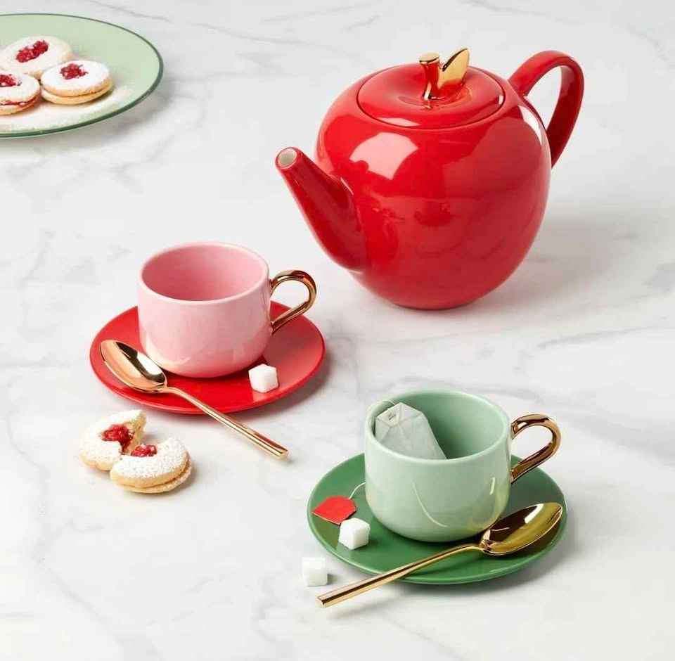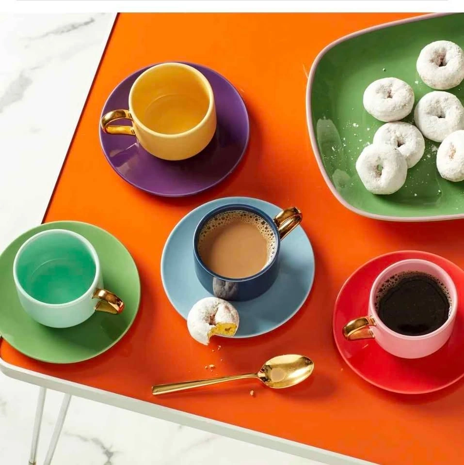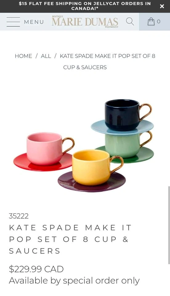 New in box set. Kate Spade Make It Pop Set of 8 Cup & Saucers. Tea, anyone? When it's time for a restful pause, serve up a comforting brew and some biscotti using Kate Spade New York's colorful cups and saucers. Hand wash. Not dishwasher safe. Cups: 2.5"H x 3.25"Diameter, capacity 3 oz | Saucers: 6"D. Two sets available. Pickup/ meetup in Mississauga.