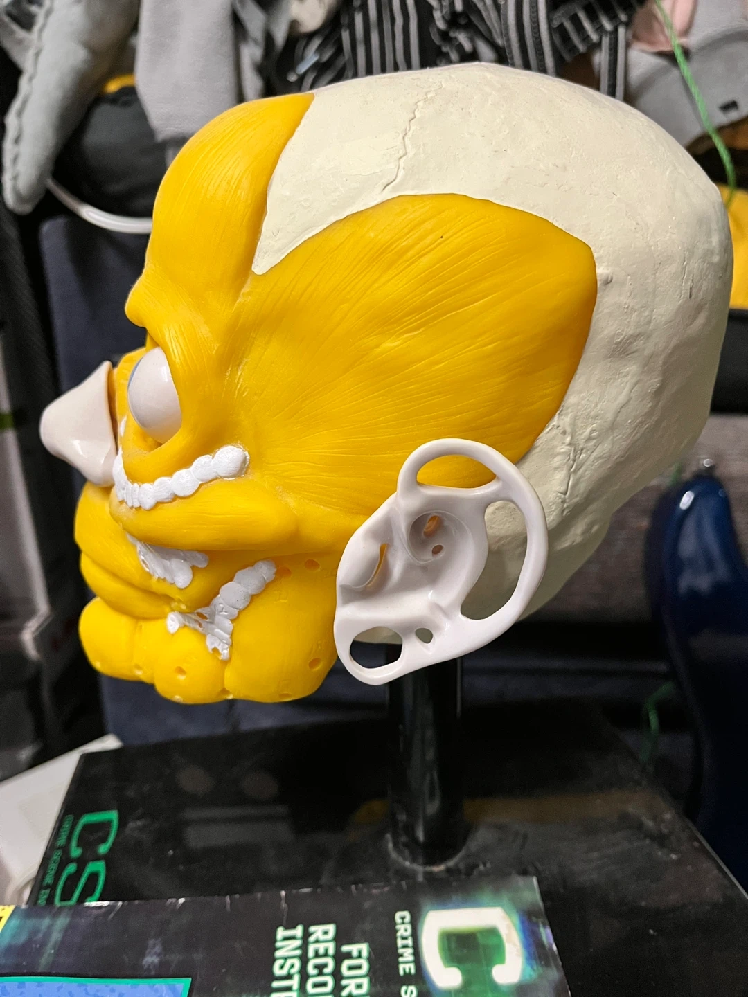 This CSI Forensic Facial Reconstruction Kit includes a skull model with muscle and ear details. It comes with an instruction manual for learning facial reconstruction techniques. It's a great tool for educational purposes or crime scene investigation enthusiasts!