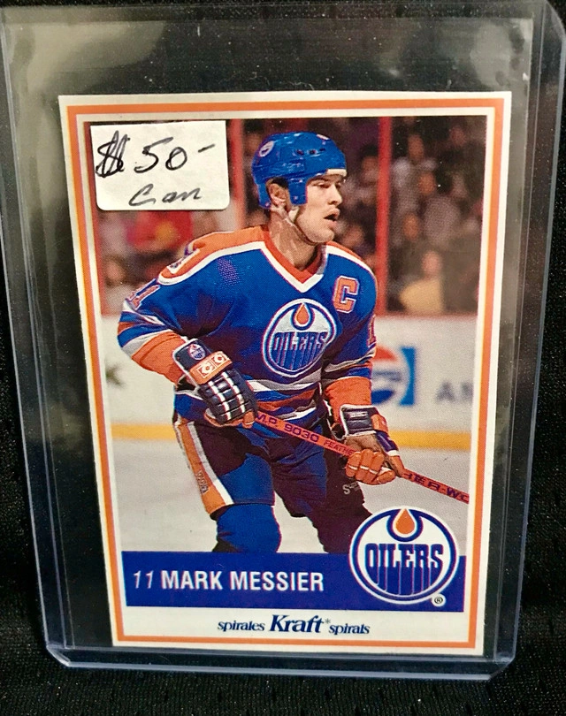 I'm offering a vintage Mark Messier 1990 hockey card, featuring the Edmonton Oilers legend. This card is a great addition to any sports memorabilia collection, showcasing Messier in his prime with the Oilers. It's in great condition for its age, making it a must-have for hockey enthusiasts and collectors alike. * Player: Mark Messier * Team: Edmonton Oilers * Year: 1990 If you're reading this, the card is still available and ready to join your collection! Don't miss out on owning a piece of hockey history!
