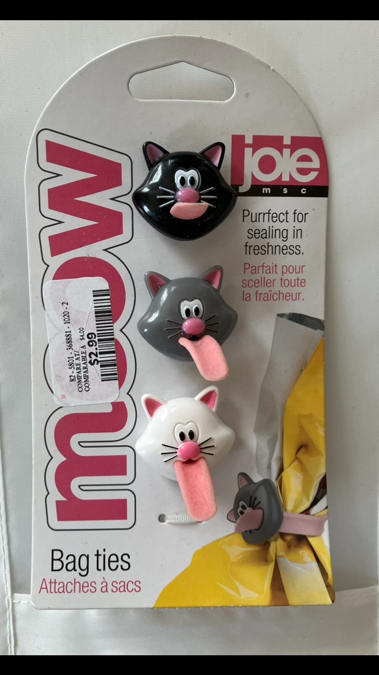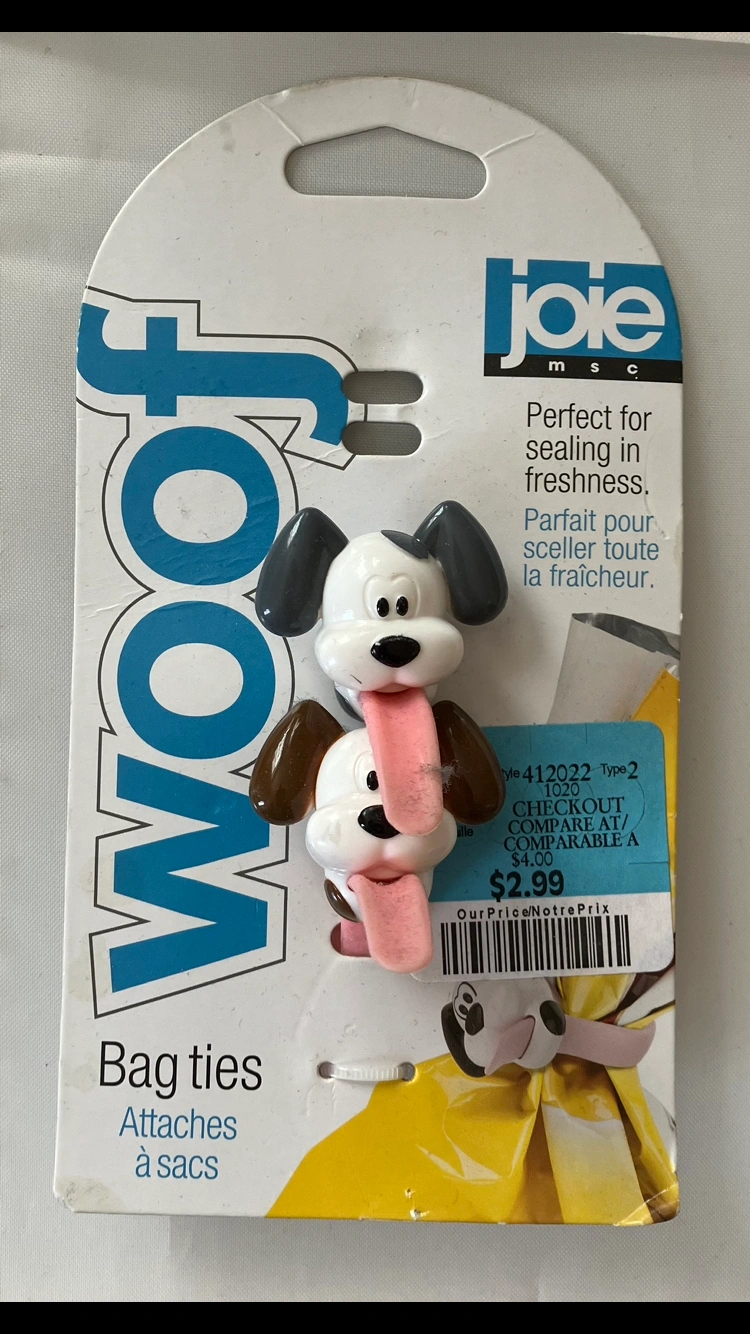 These are adorable Joie brand reusable bag ties! I originally bought them from Homesense. They actually work very well, The ties are silicone, Iβm offering both sets together(5 bag ties in total) as shown in pictures, for only $2!!! The cat set is full with 3 ties, and the dog set has two ties, and theyβve never been used.