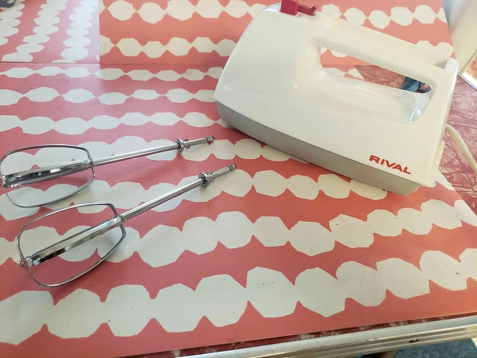 251990s Rival 3-speed hand mixer. This thing will outlive us all. I inherited 3 mixers total and do not need this one. Works great. Pick up in Upper Lonsdale