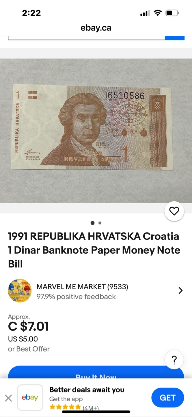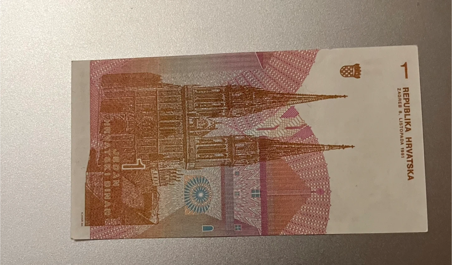 250Selling a 1991 Republika Hrvatska 1 Dinar banknote. It's in good condition for its age!